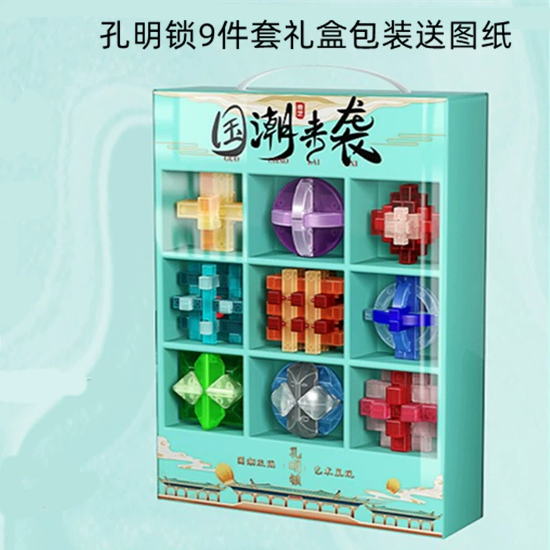 | nameOriginal | Free shipping Qiyi Kongming lock Luban lock 9-piece gift set gift box children and adults educational intelligence mortise and tenon leisure toys |