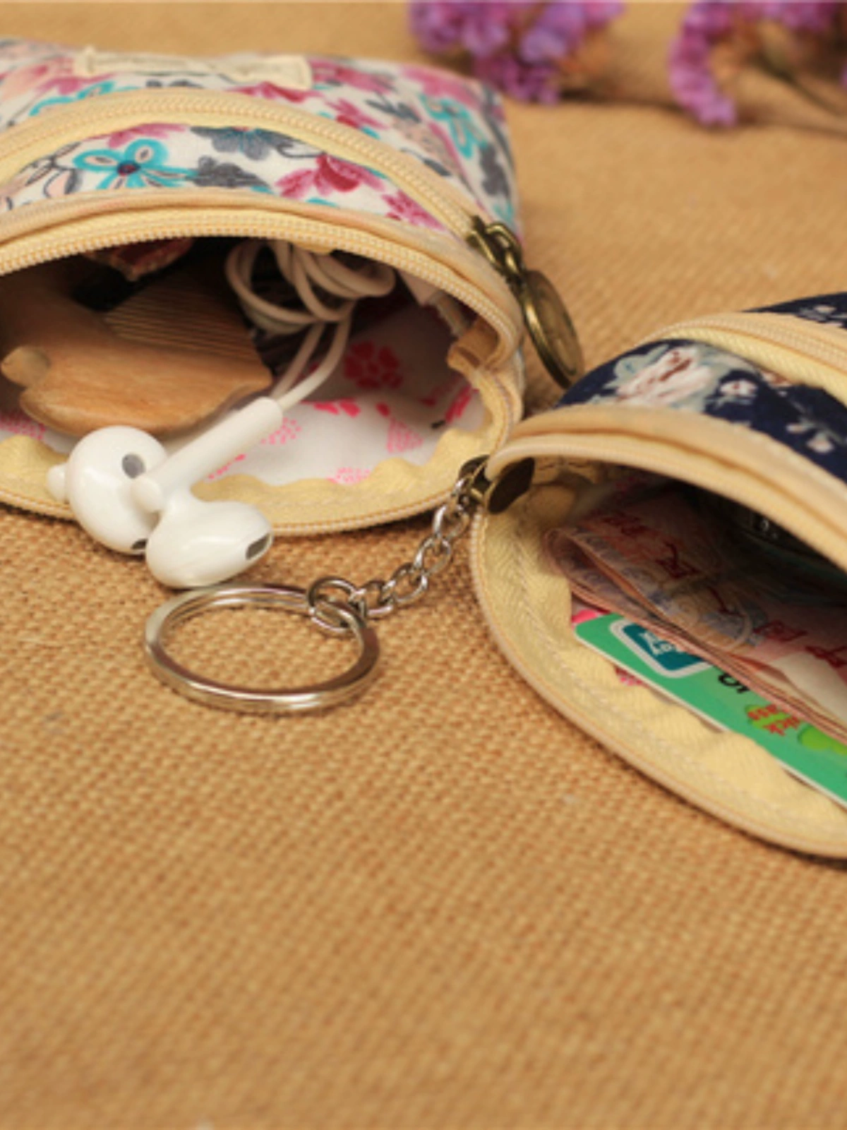 Free shipping small purse coin purse Korean version zipper women's canvas art cute mini coin bag headphone storage bag