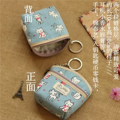 Free shipping small purse coin purse Korean version zipper women’s canvas art cute mini coin bag headphone storage bag