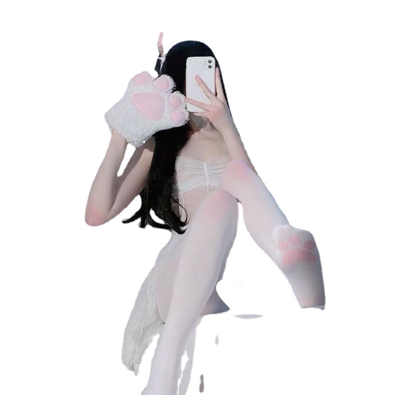 | nameOriginal | Free shipping white silk Japanese Lolita white cat stockings cute cat claw pantyhose student Lolita over the knee long |