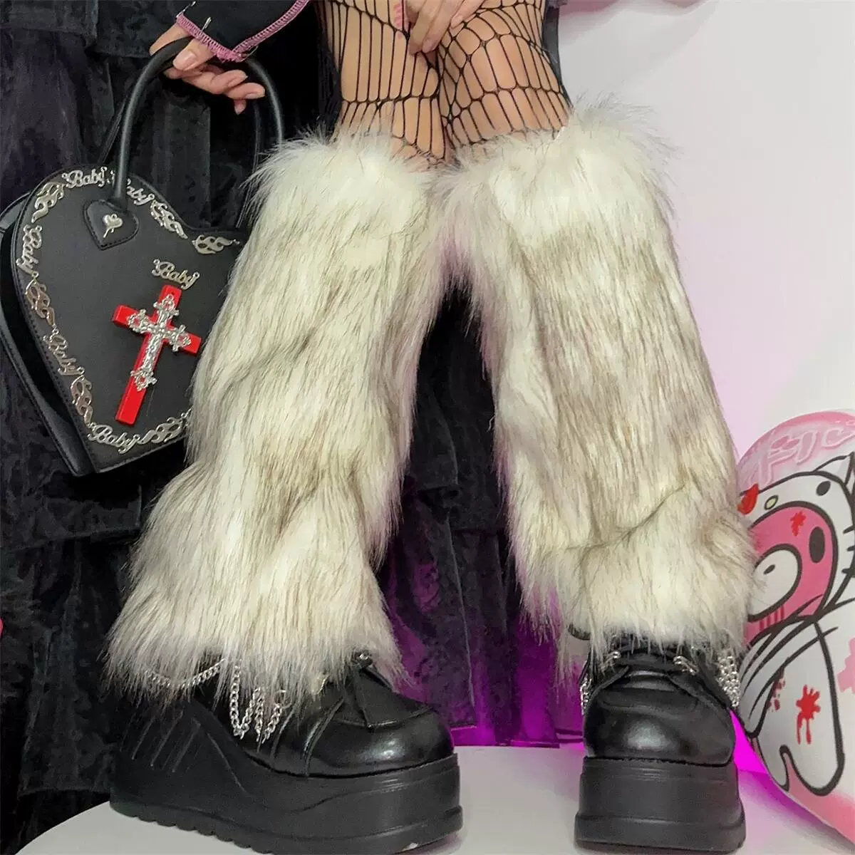 | nameOriginal | Free shipping Y2K hot girl subculture gray autumn and winter JK gray female imitation fur mid-calf furry socks set calf cover |