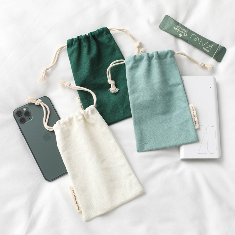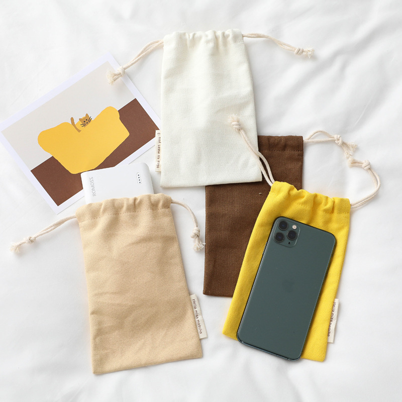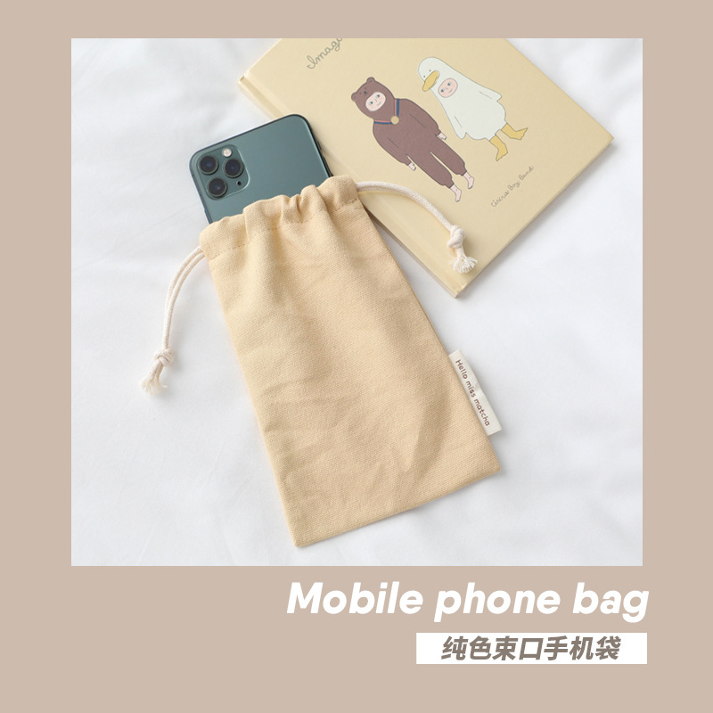 Free size large screen 6.7-inch 6.8-inch Apple Huawei mobile phone bag men's and women's solid color 12-inch canvas drawstring mobile phone bag