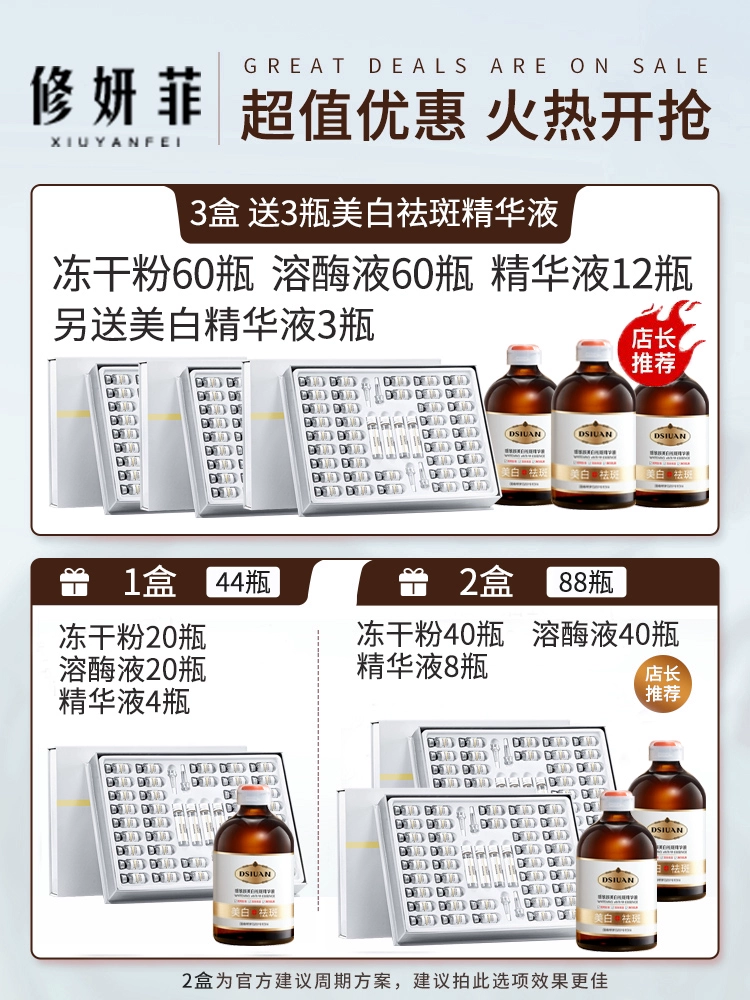 | nameOriginal | Freeze-dried powder, whitening, freckle removal, firming, anti-wrinkle aging, acne mark repair, antioxidant, brightening and removing yellowing essence |