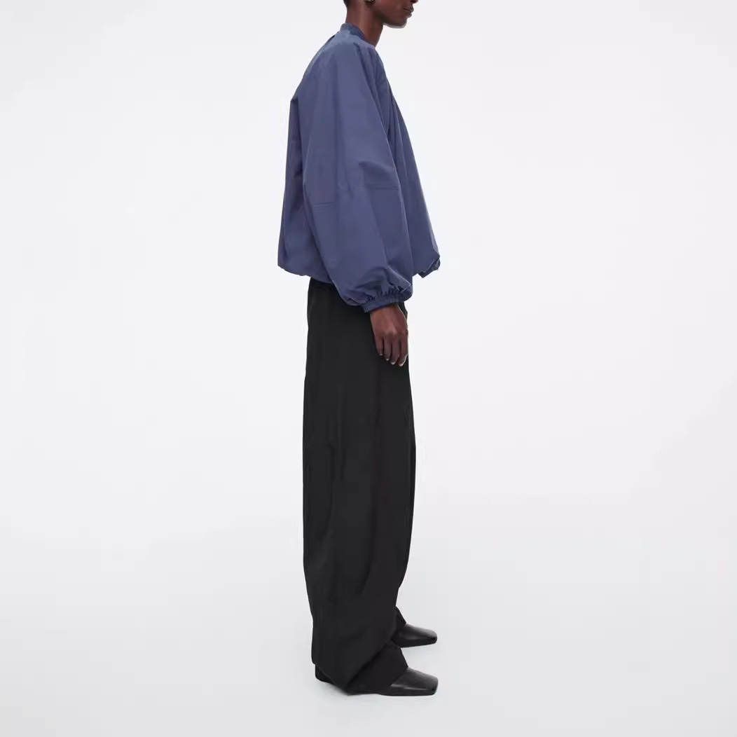 French 24 Years Early Autumn New Casual Rags Pleated Aviator Blue Jacket Loose Round Neck Long Sleeve Jacket