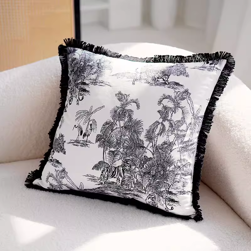 | nameOriginal | French black and white forest pillow case small fragrance light luxury pillow living room sofa modern simple high-end back cushion |
