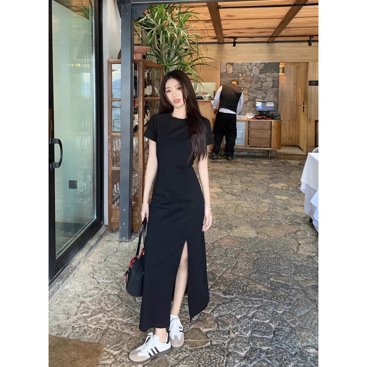 French black summer temperament A-line short-sleeved dress