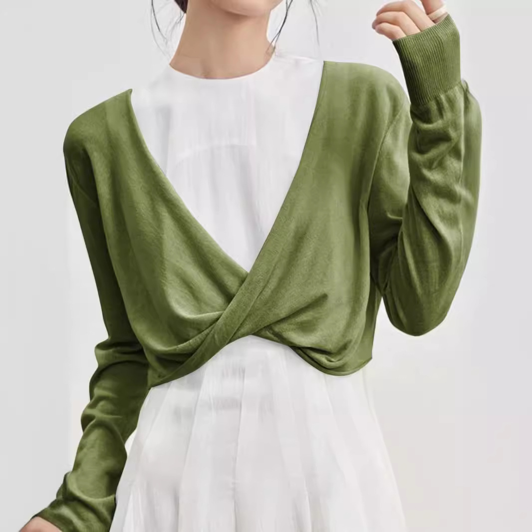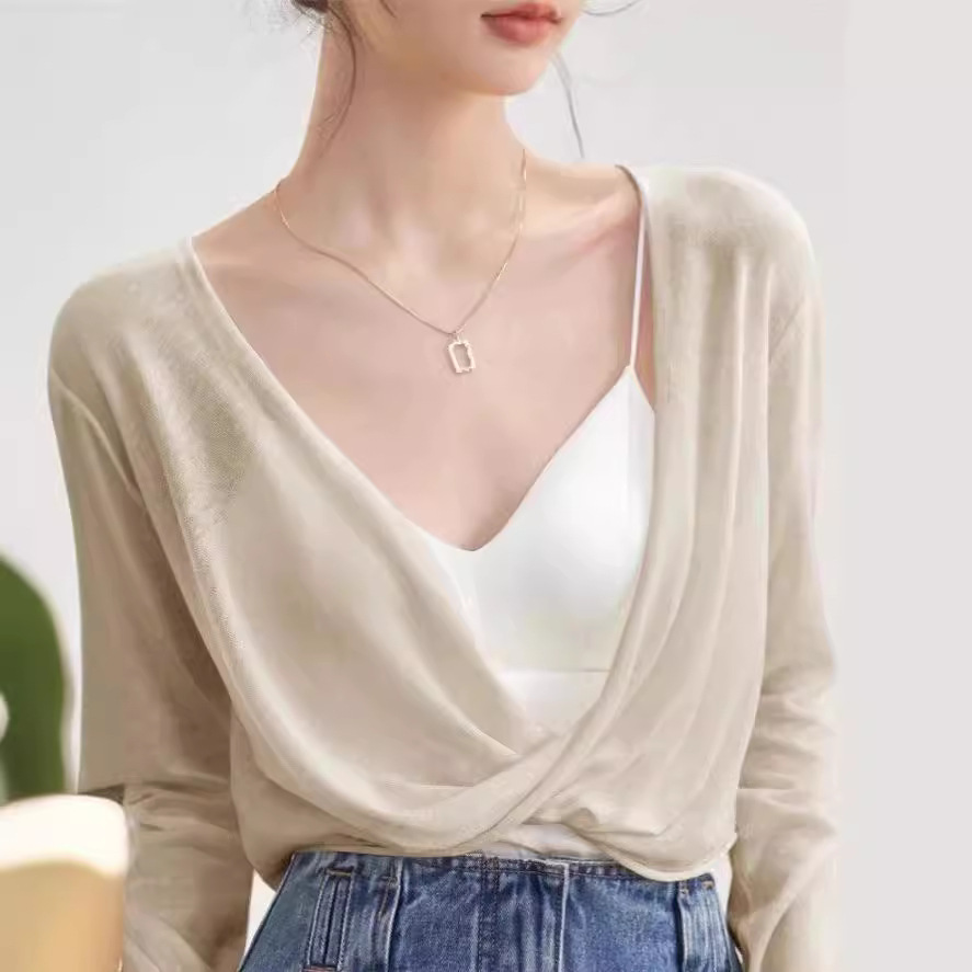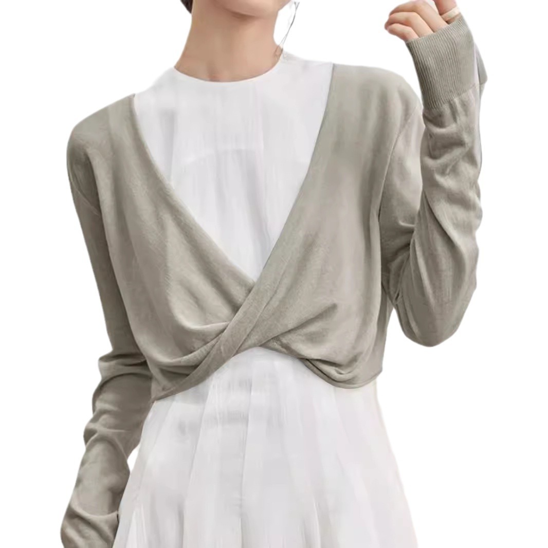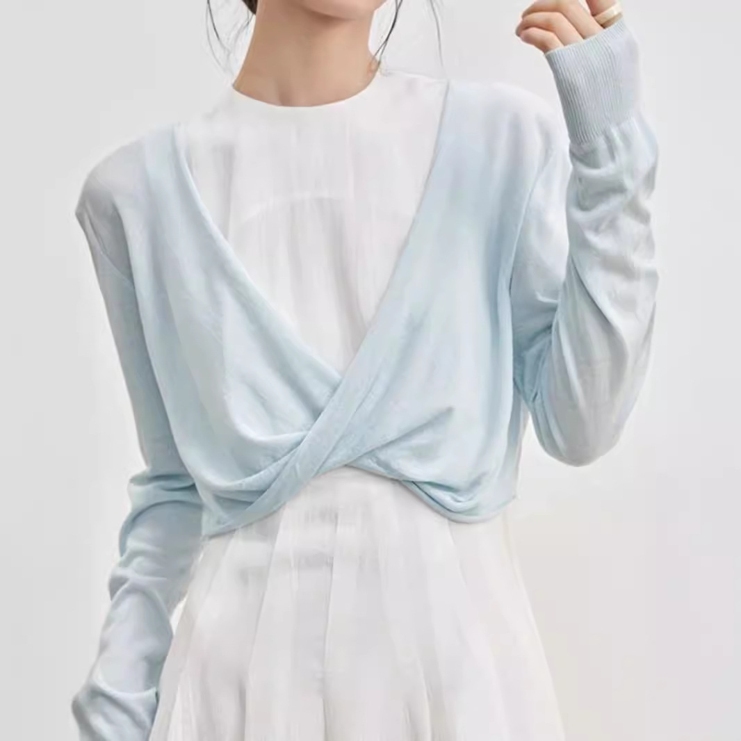 French Blue Kink Knitted Cardigan Sunscreen Air Conditioning Blouse Women's Spring and Summer Short Design Sense Ice Silk Thin Top