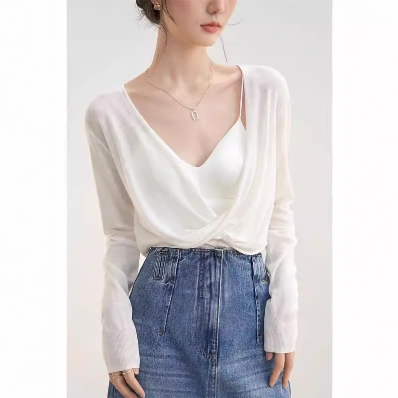 French Blue Kink Knitted Cardigan Sunscreen Air Conditioning Blouse Women’s Spring and Summer Short Design Sense Ice Silk Thin Top