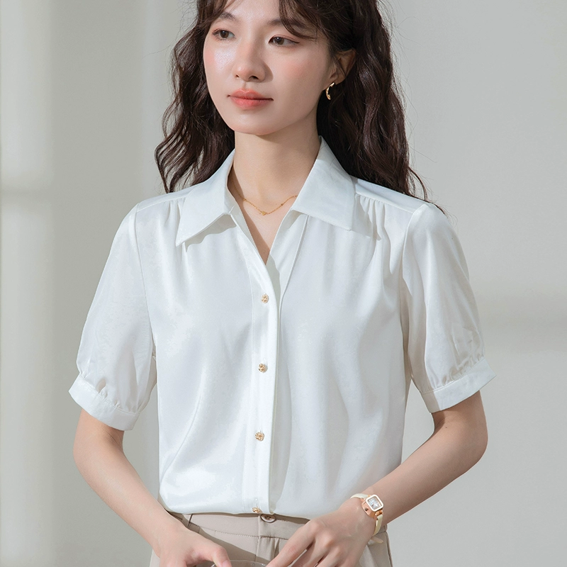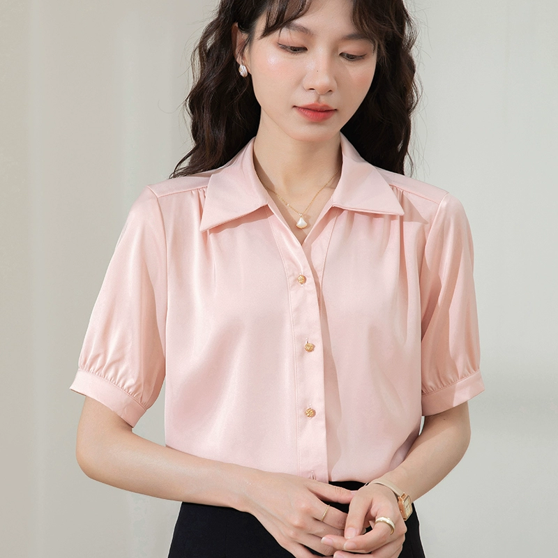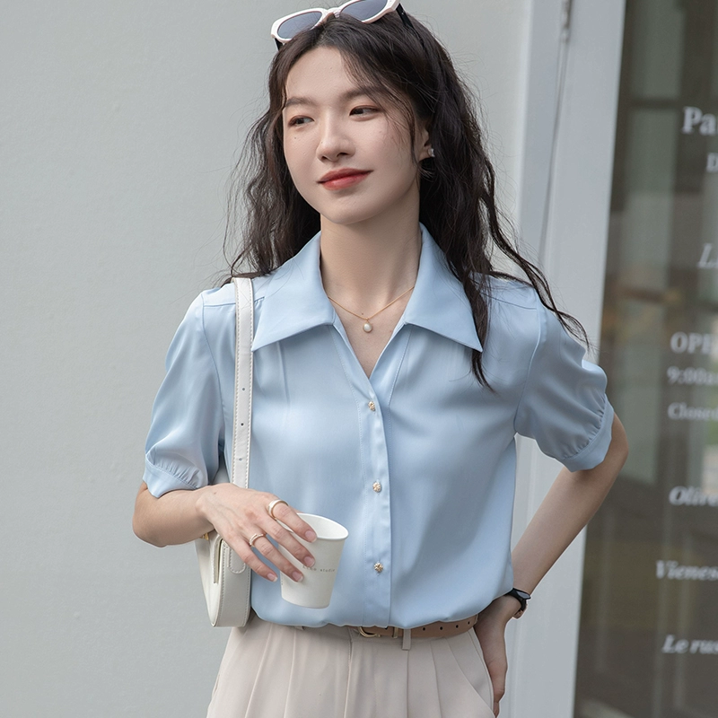 | nameOriginal | French blue short-sleeved formal v-neck top satin |