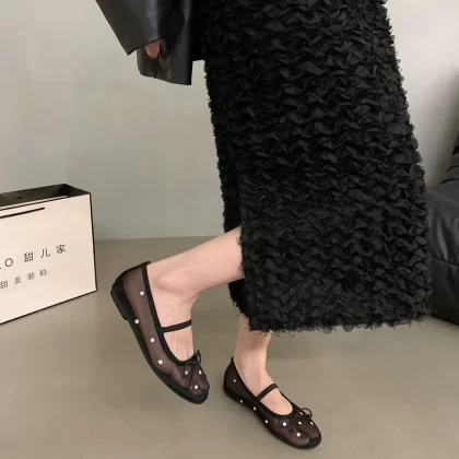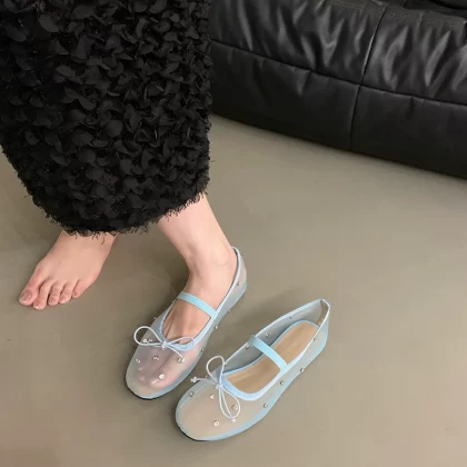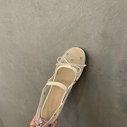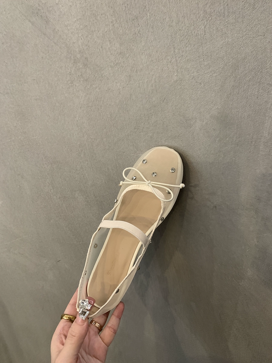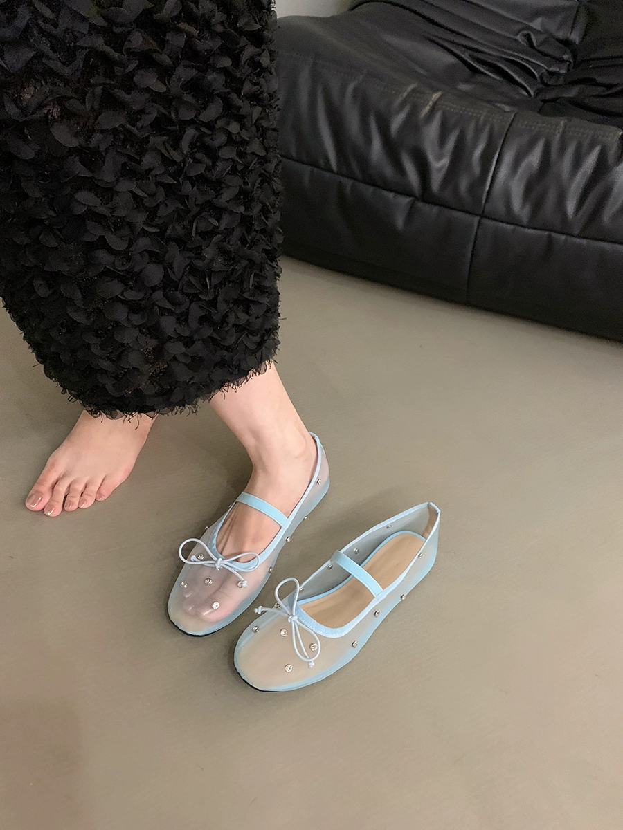 | nameOriginal | French bow rhinestone shallow mouth with mesh ballerina shoes summer new flat Mary Jane sandals |