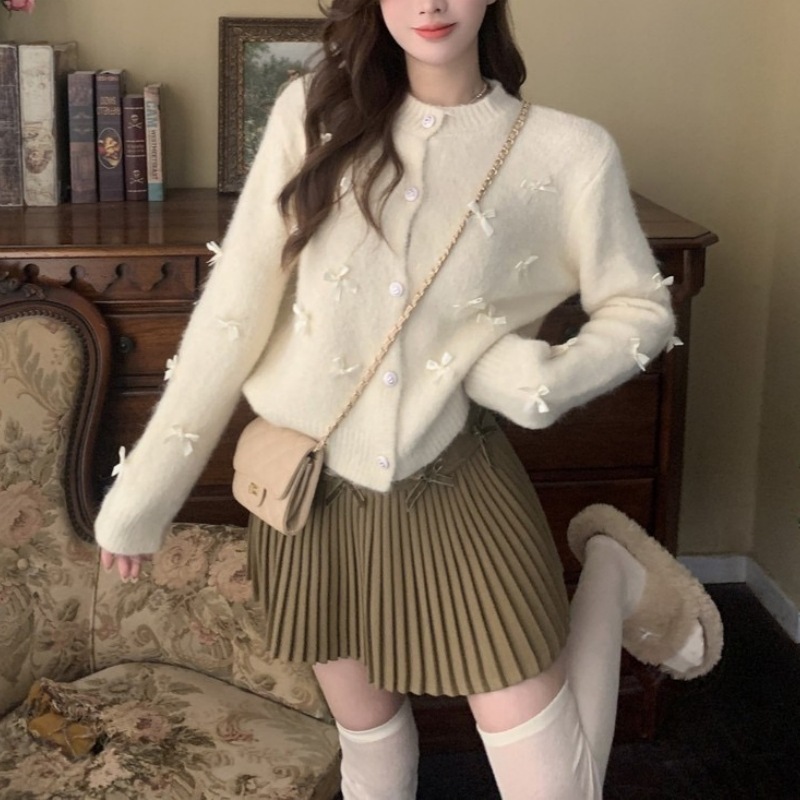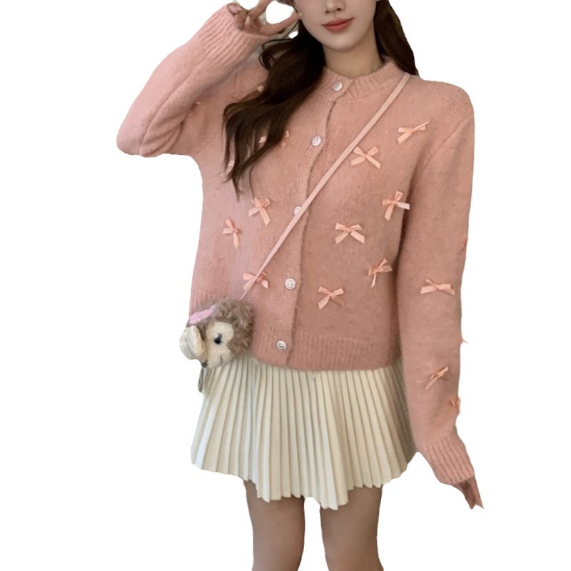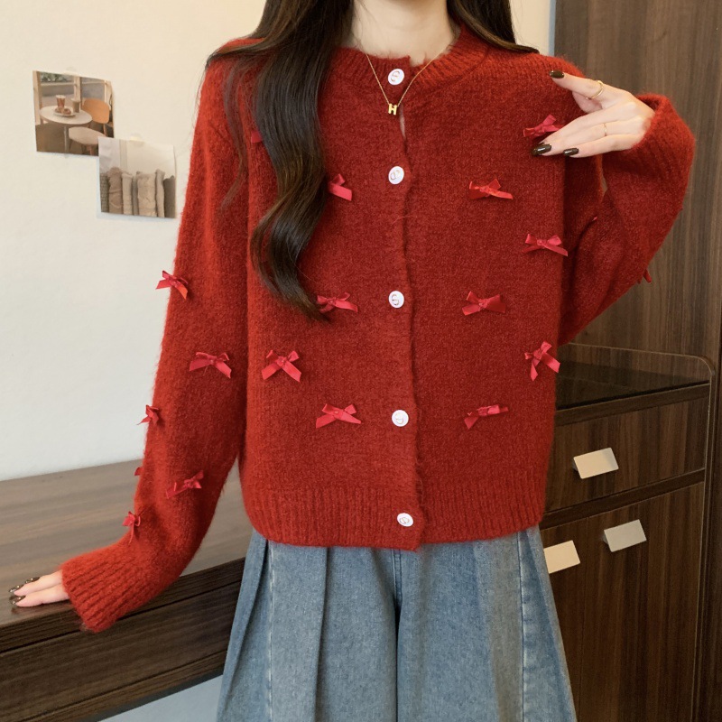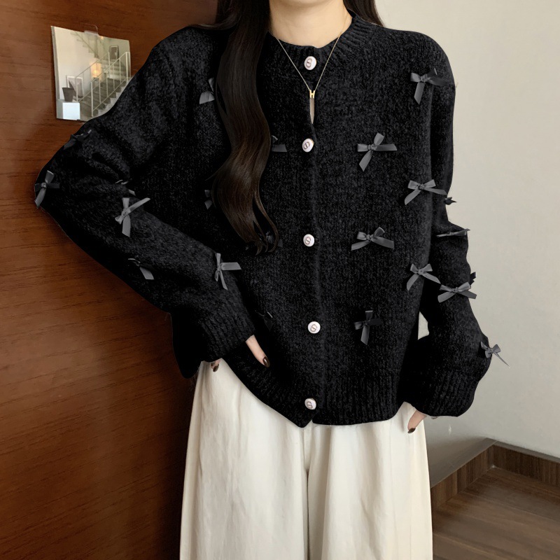 | nameOriginal | French Chanel style heavy work bow sweater top women's short loose round neck fashionable soft glutinous coat |