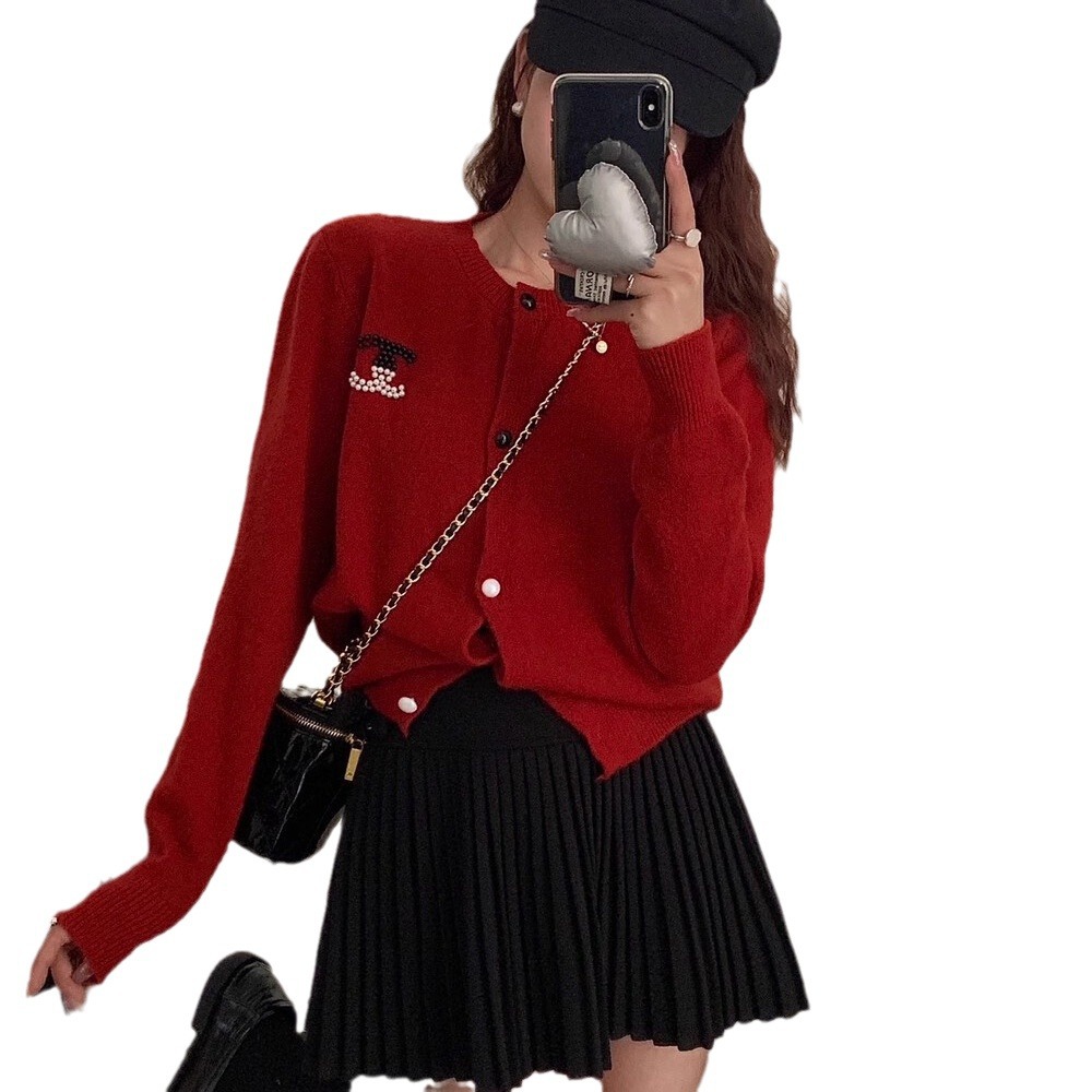 | nameOriginal | French Chanel style high-grade beaded single-breasted sweater for women 2024 spring new Chinese New Year red knitted cardigan |