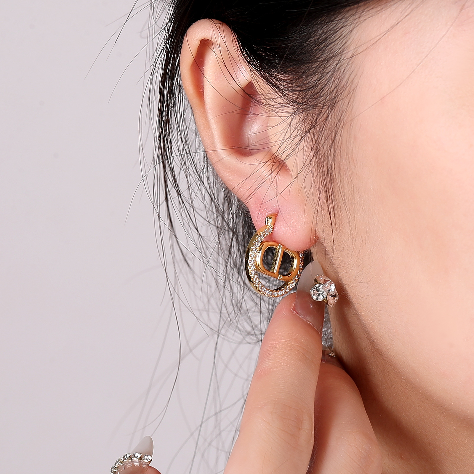 | nameOriginal | French Chanel style letter CD hollow zircon earrings 925 silver needle light luxury design sense high quality ear buckle wholesale |