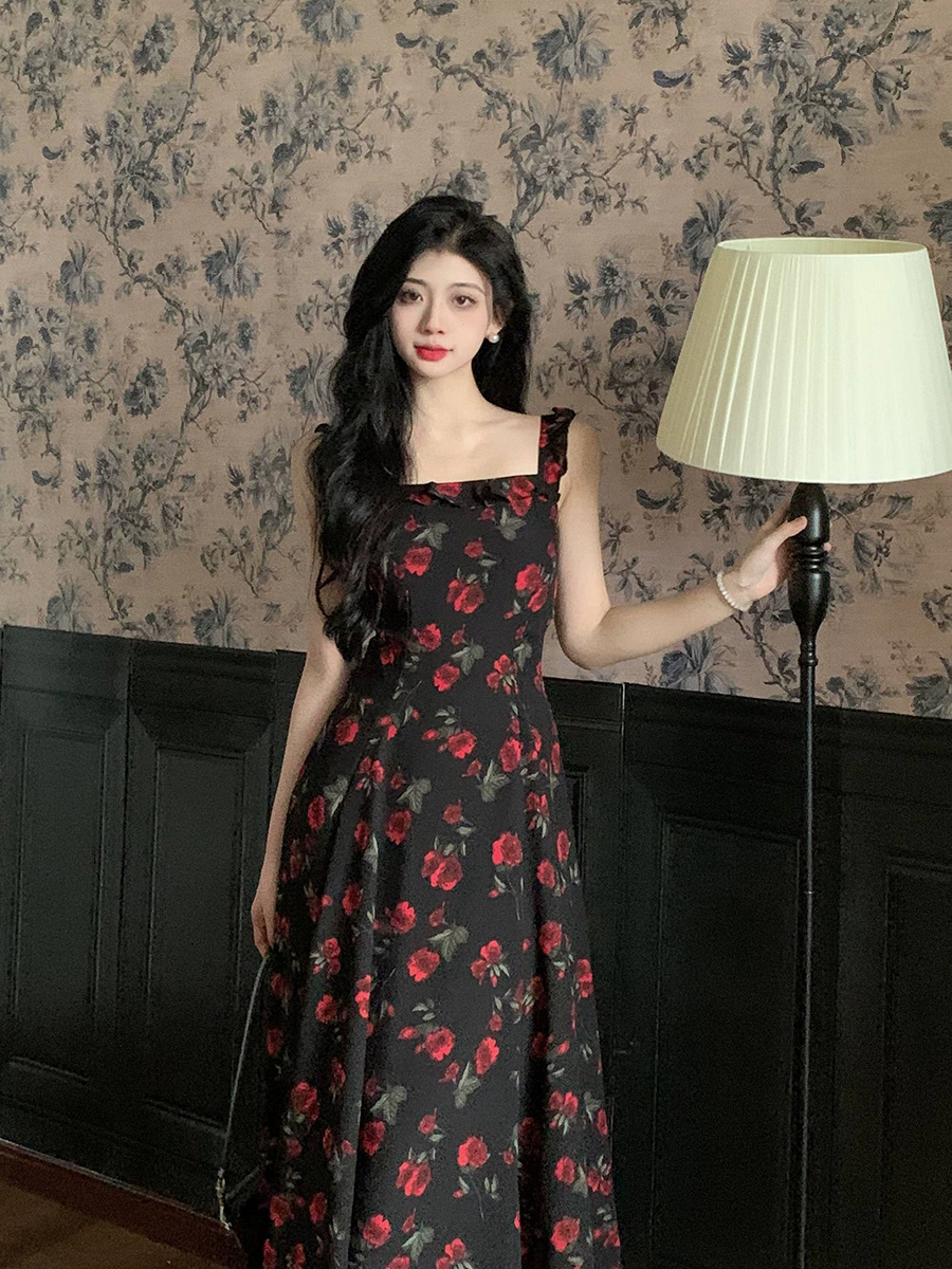 | nameOriginal | French chiffon fat girl belly-covering slimming floral dress |