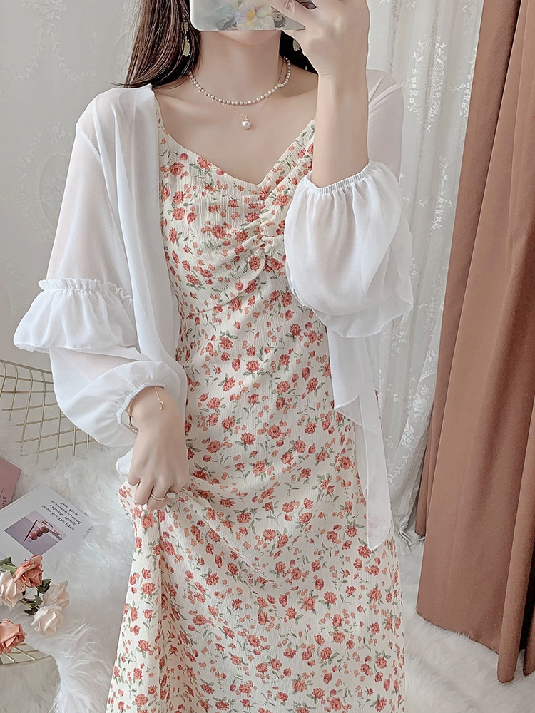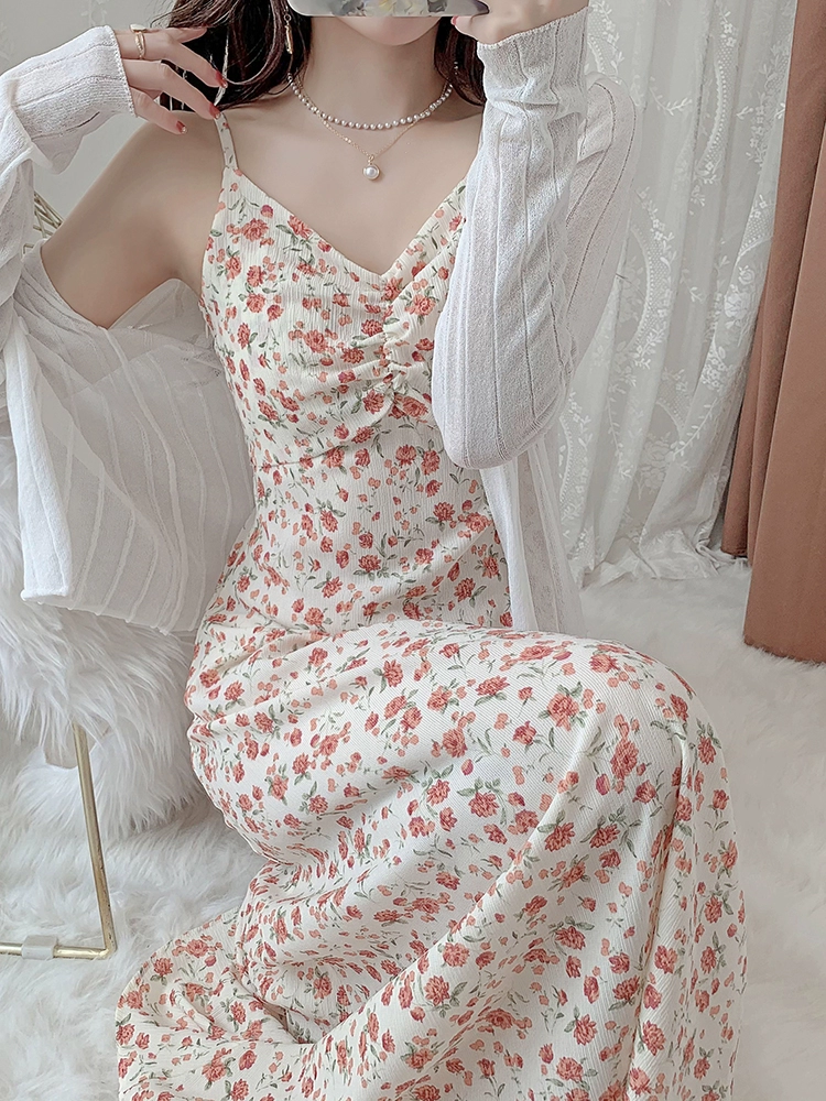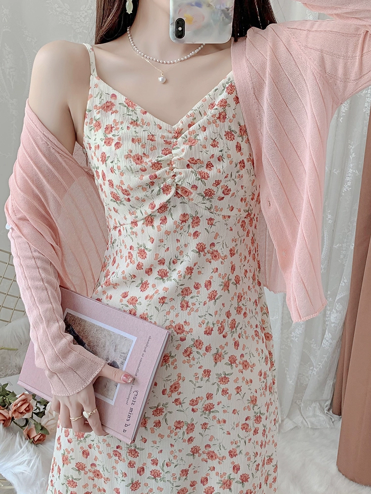 | nameOriginal | French chiffon pink suspender suit women's summer long dress |