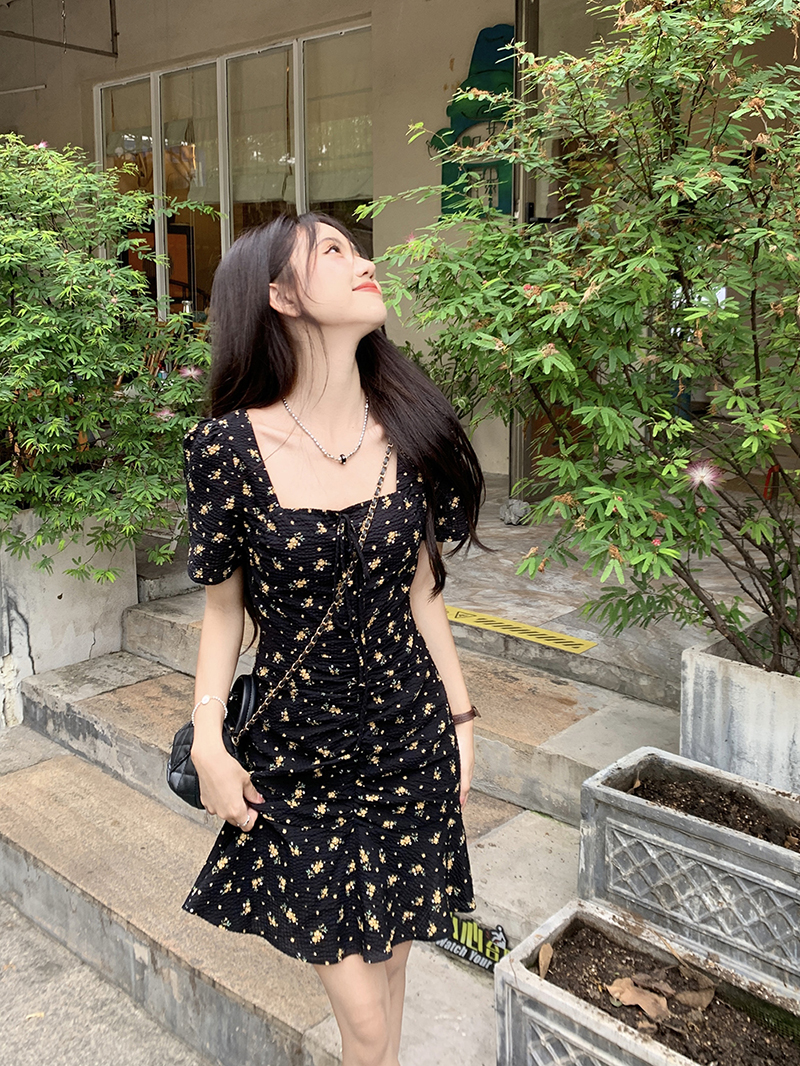 | nameOriginal | French chiffon summer fat mm fishtail floral dress |