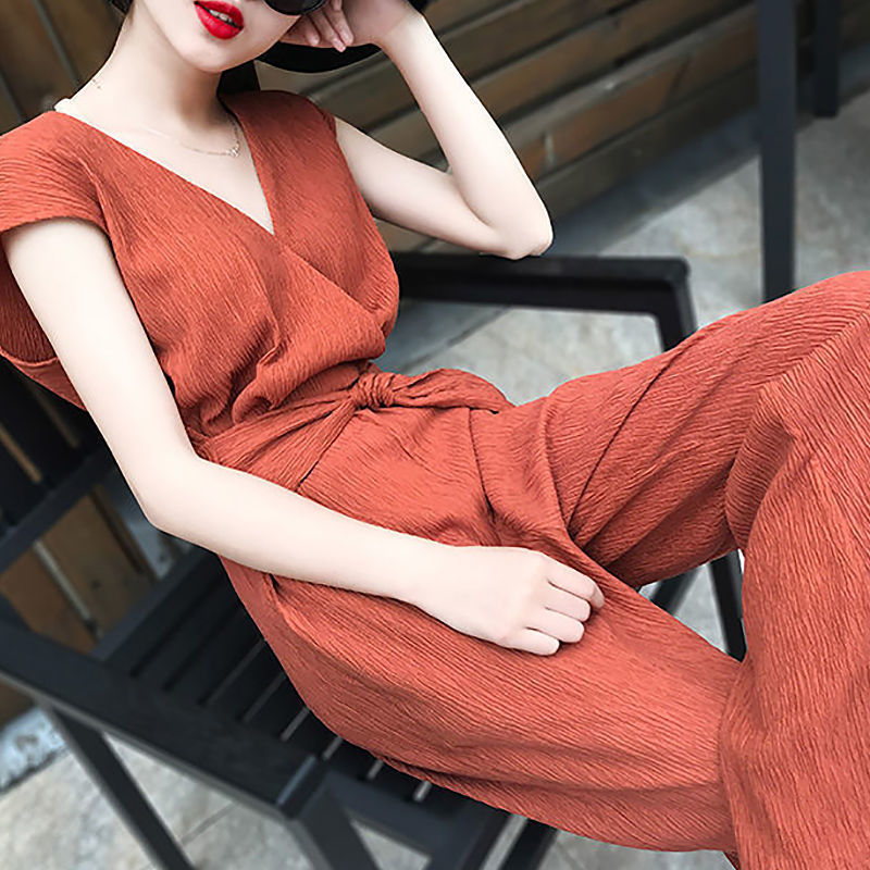 French Collar Pants Women's 2024 Summer Western Style Waist Tight Strap Wide Leg Pants Slimming Elegant Pants