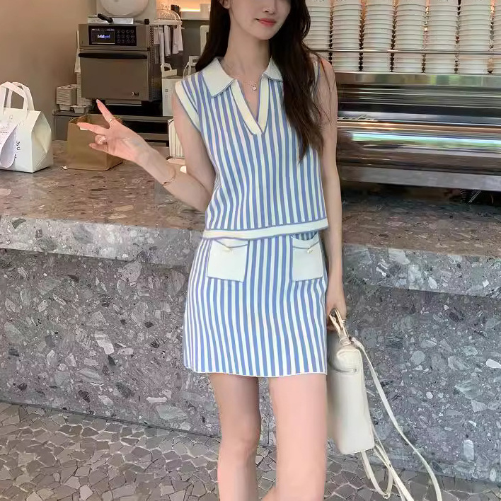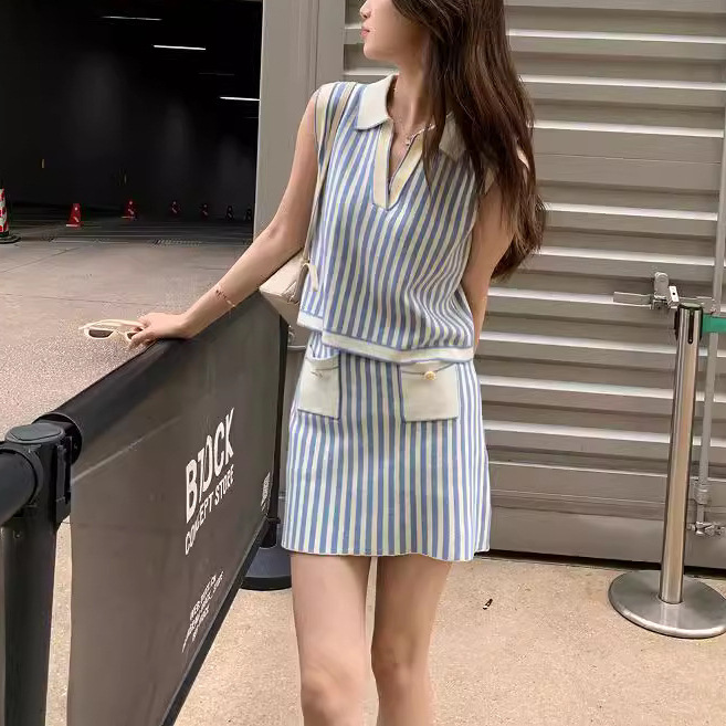 | nameOriginal | French Commuter Chanel Style Blue Striped Skirt Fashionable Knitted Skirt Women's Summer Straight Skirt |