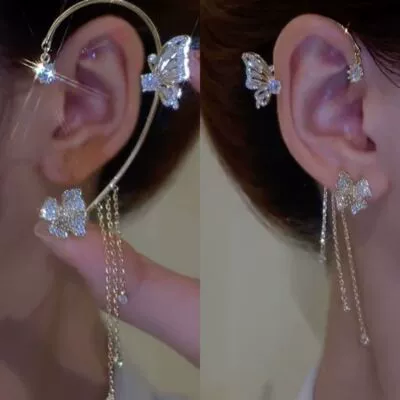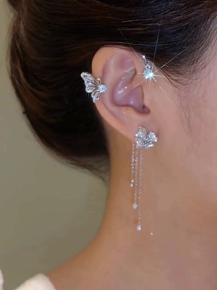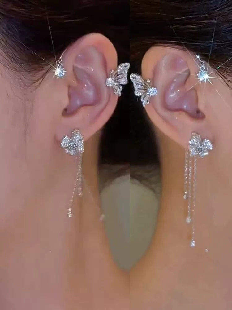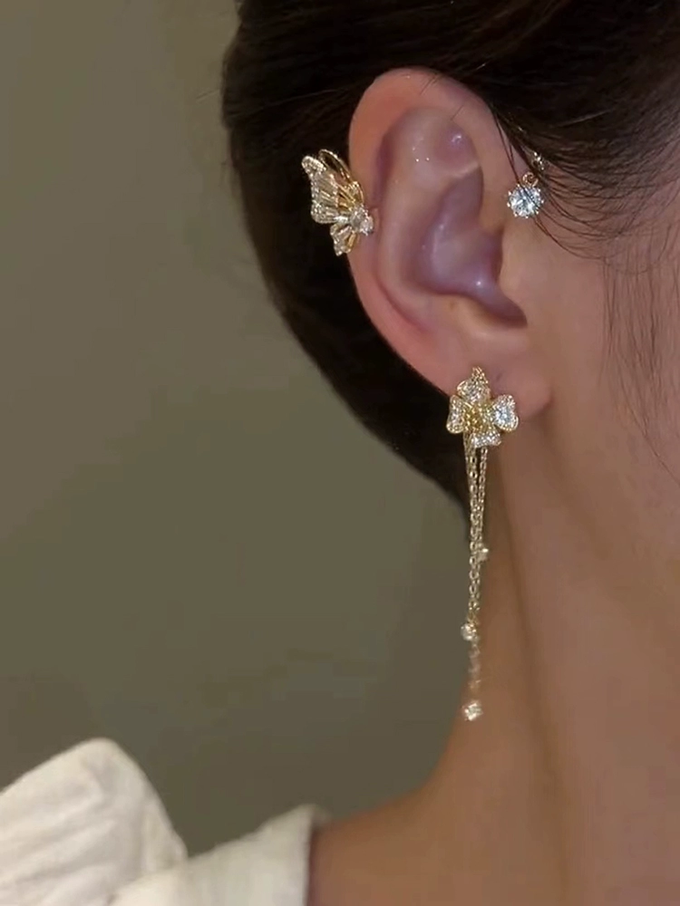 French design butterfly ear clip without ear pierced ear hanging ears, female temperament high -end niche cold air ear hanging earrings