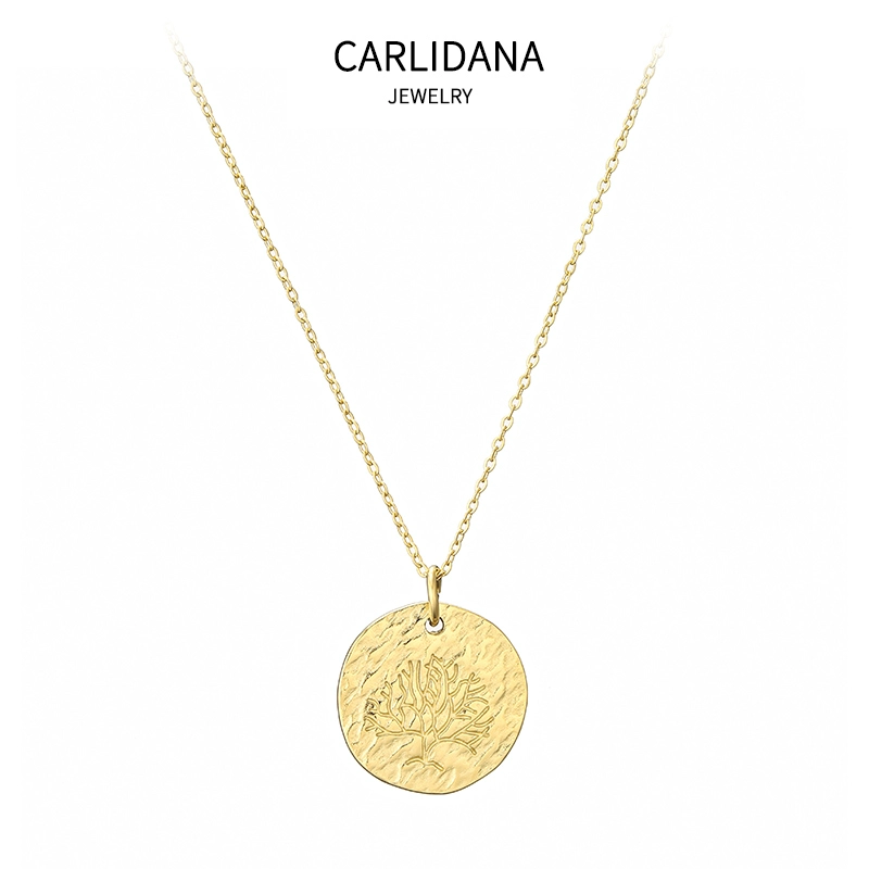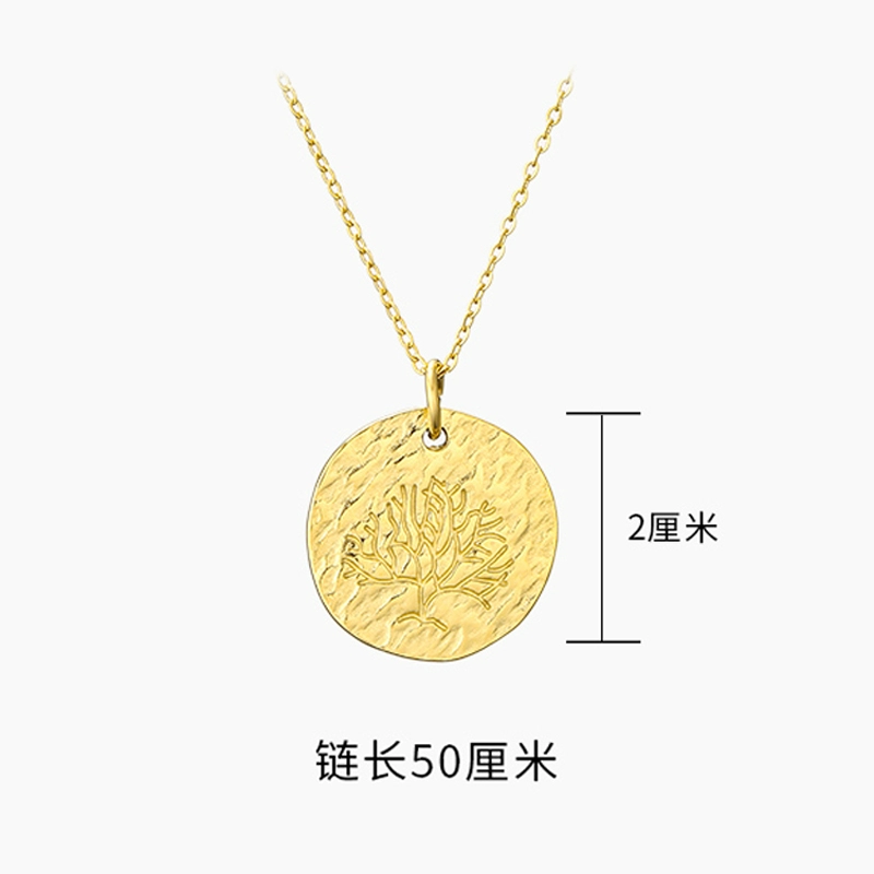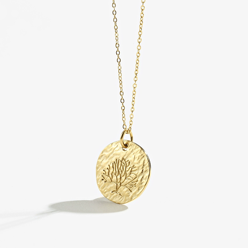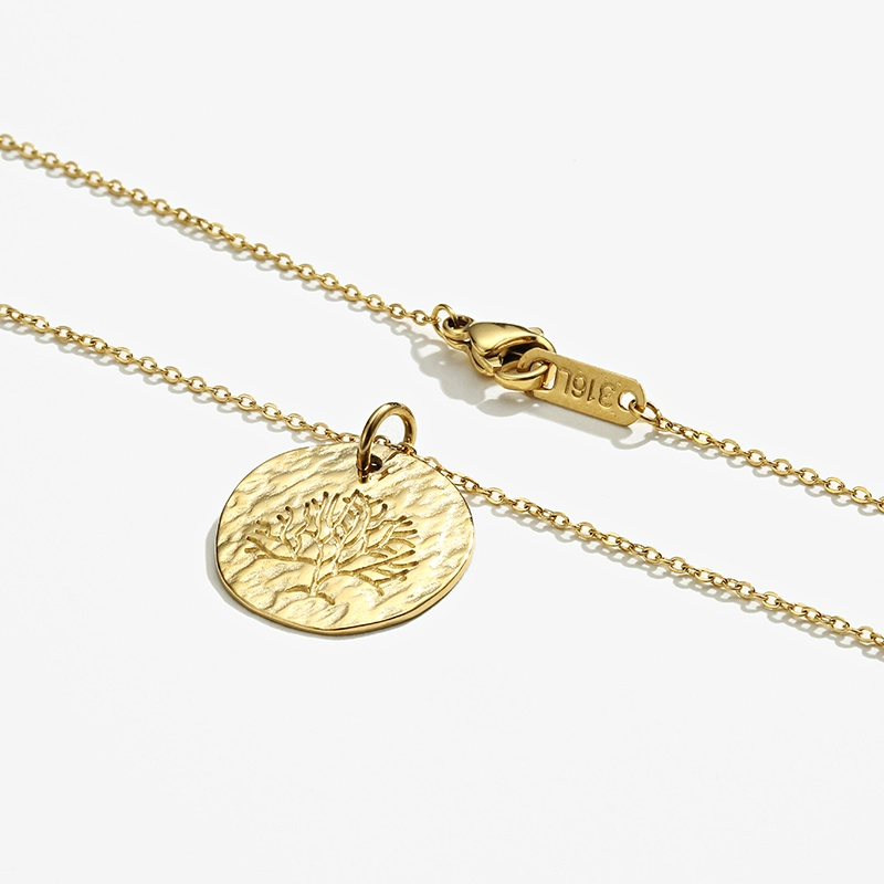 | nameOriginal | French design titanium steel gold-plated cast special-shaped round plate concave-convex carving Italian lucky tree minimalist personality necklace |