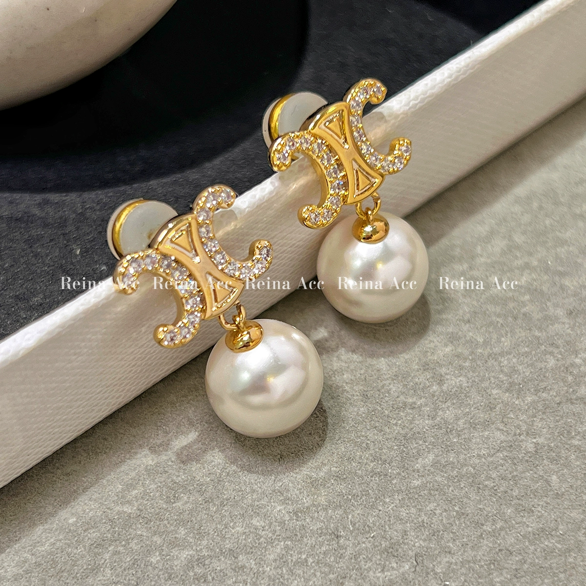 | nameOriginal | French diamond-encrusted Arc de Triomphe popular unique pearl earrings |