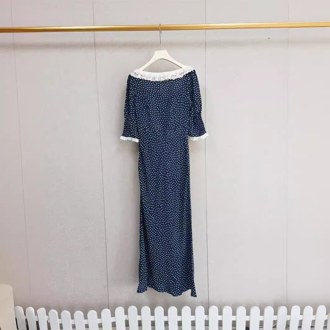 | nameOriginal | French Elegant 2024 Summer New Lace-trimmed Poll Dot Crepe Mid-length dress |