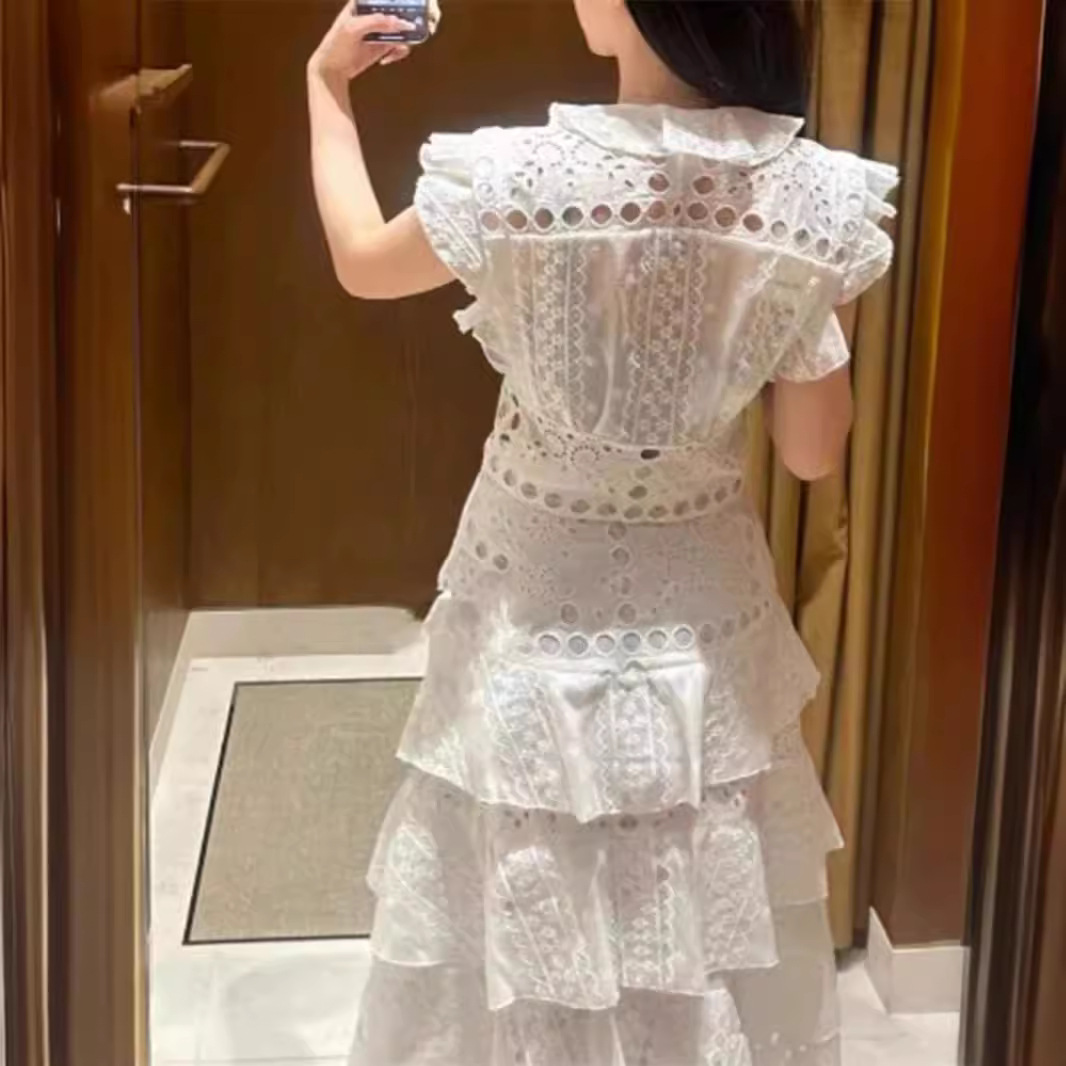 | nameOriginal | French Elegant 24 Summer New Holiday Age-reducing Lace Hollow Ruffled Strap Shirt Top Cake Skirt |
