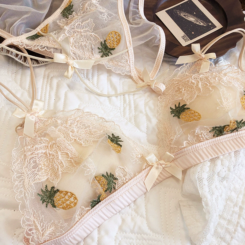 | nameOriginal | French embroidered lace sexy ultra-thin wire-free triangular cup rabbit cup underwear set comfortable and small bra |