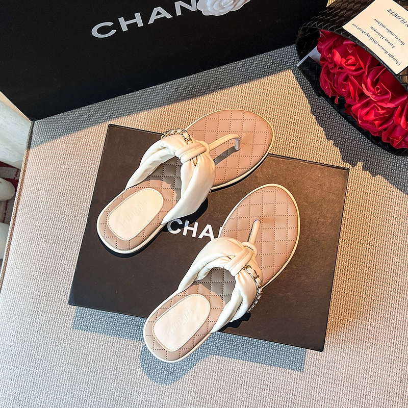 French Fairy Evening Breeze Flat Flip-flops Women’s Summer Outerwear 2024 New Summer Small Fragrant Wind Flip-Flops