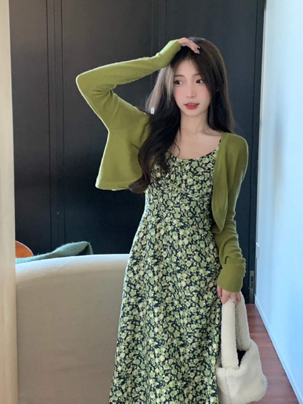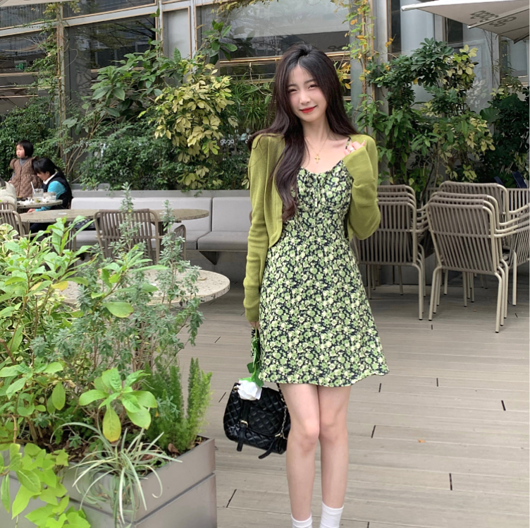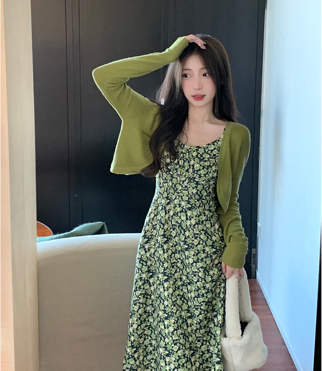 French fat girl cardigan suit suspender dress