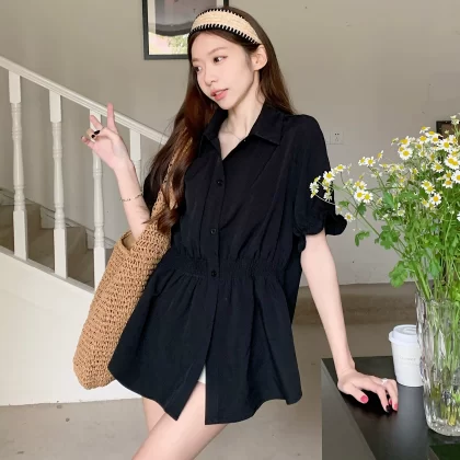 | nameOriginal | French fat girl right shoulder waist slimming short-sleeved shirt |