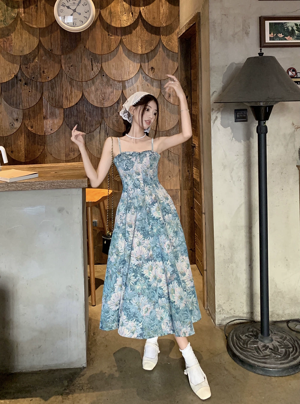 | nameOriginal | French floral dress for fat girls to look slimming and cover their flesh with suspenders |