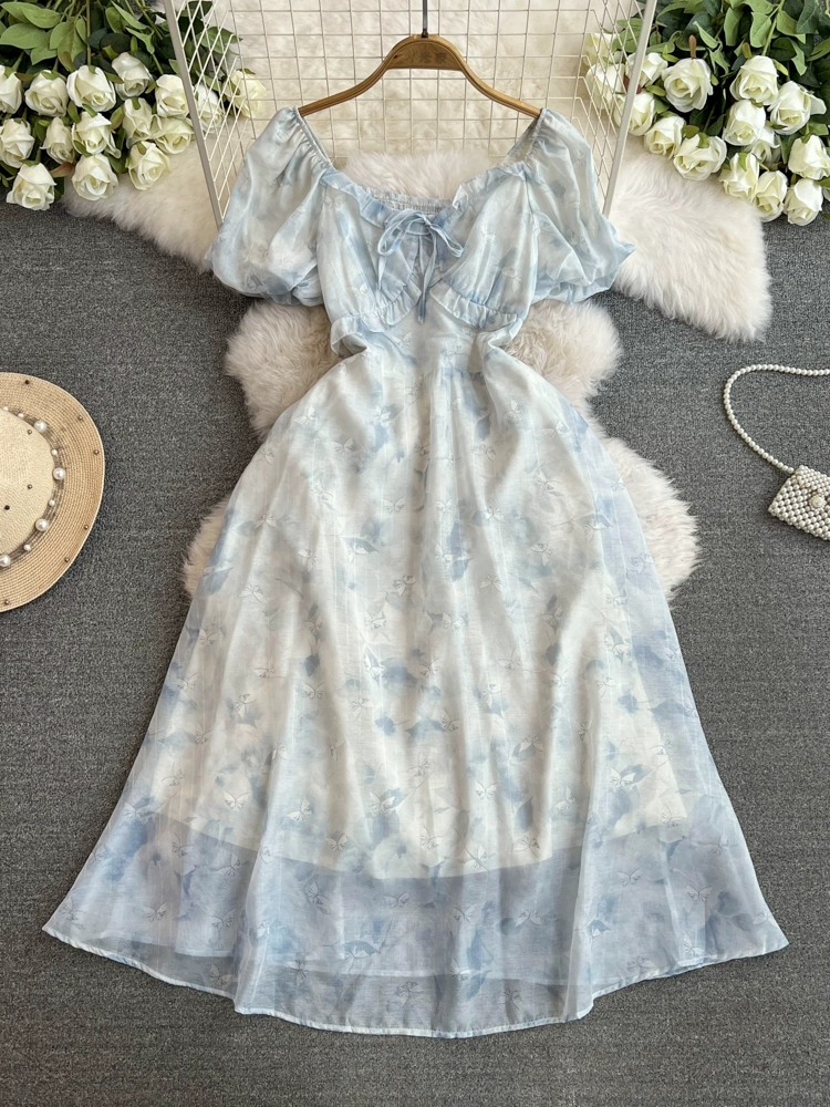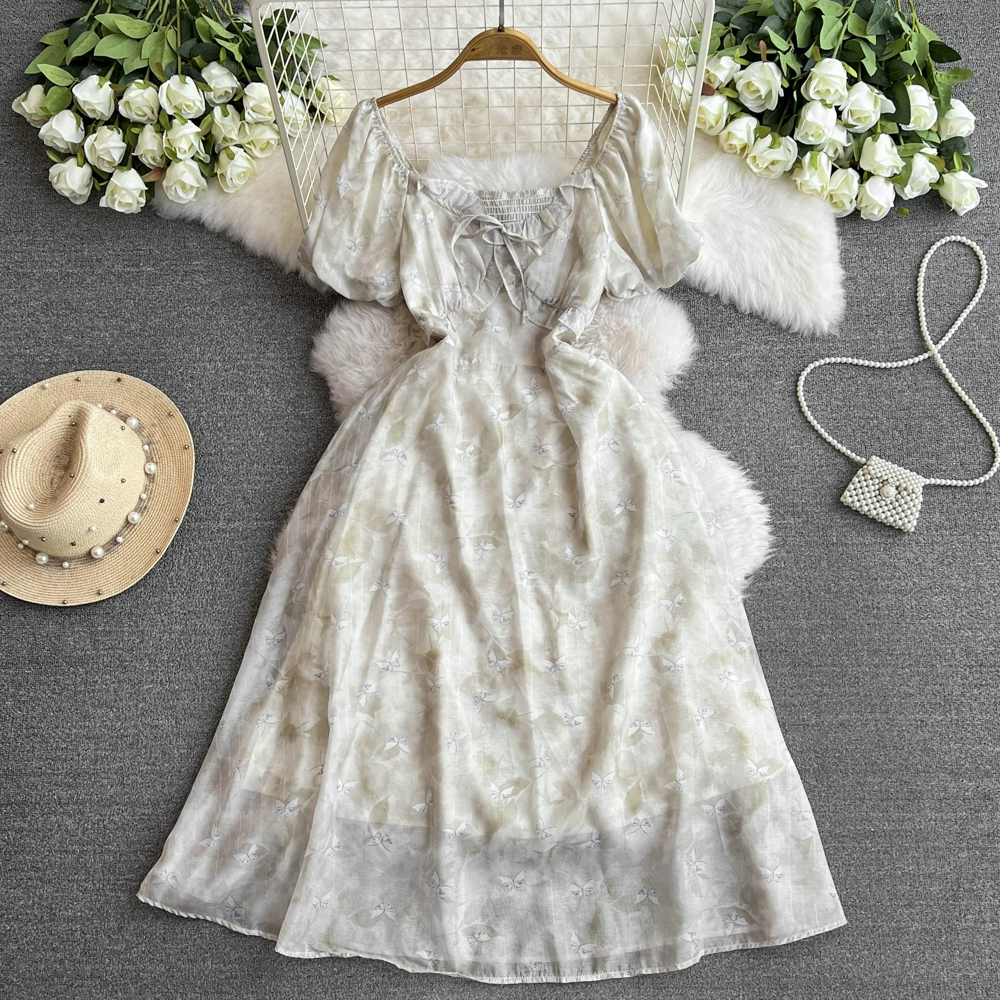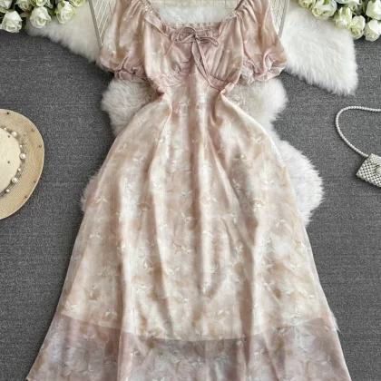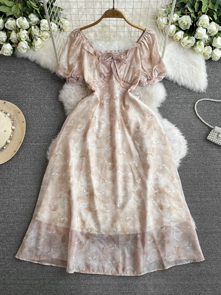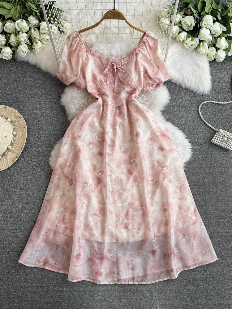| nameOriginal | French Floral Dress Summer 2024 New Square Neck Retro Niche Fairy Waist Stem Orange First Love Skirt |