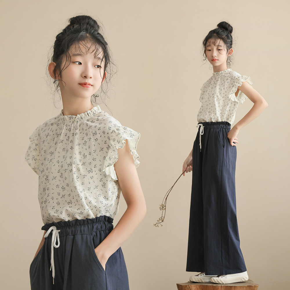 | nameOriginal | French floral small flying sleeve shirt for girls Summer 2024 New chic ruffled small round neck age-reducing top |