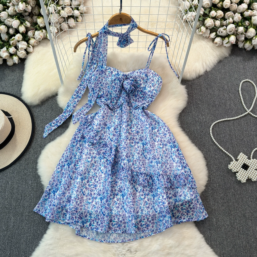 | nameOriginal | French Floral Strap Ruffle Dress Fairy Sanya Seaside Vacation Beach Skirt Super Fairy Backless Short Skirt |