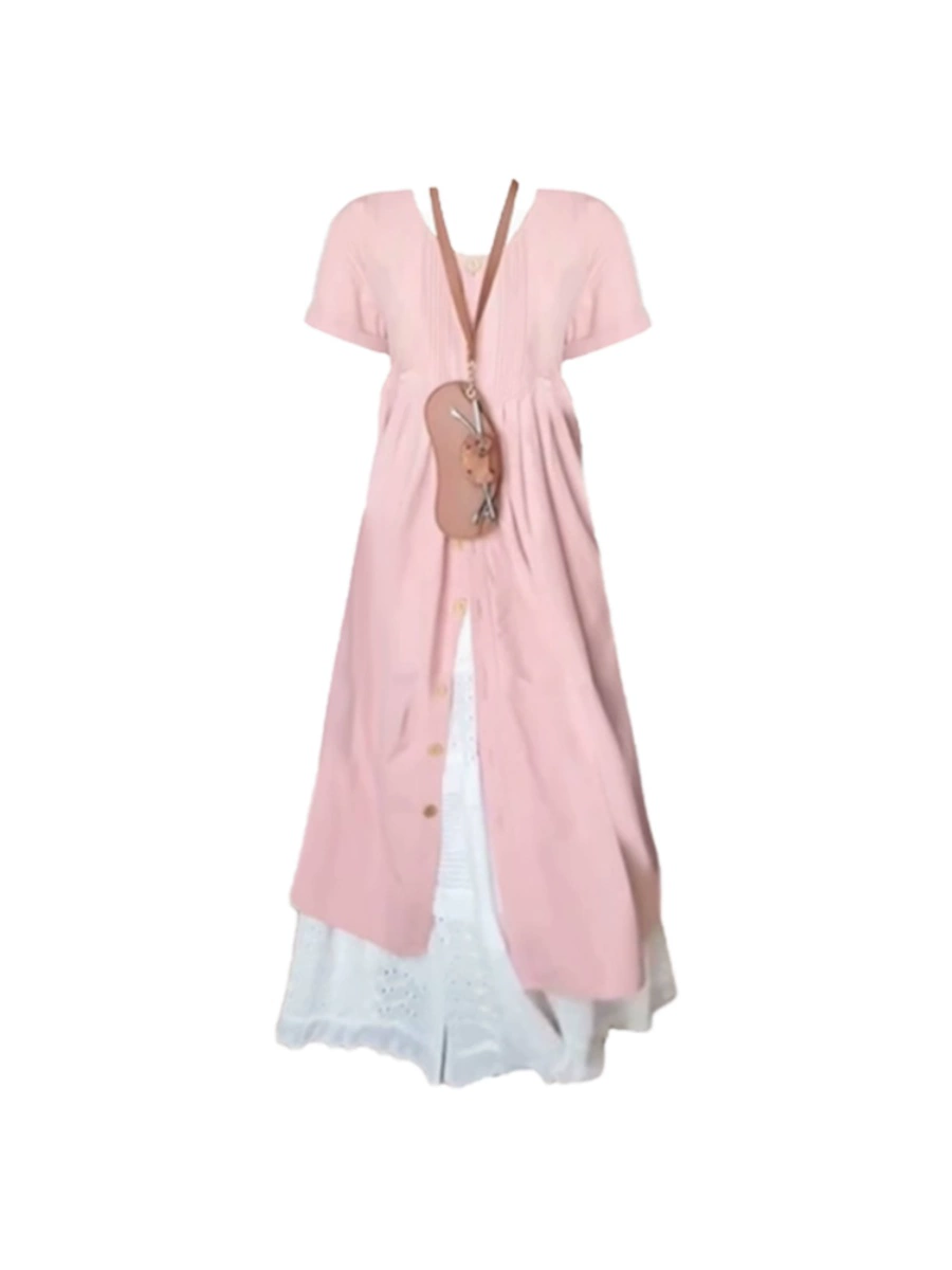 | nameOriginal | French gentle style sweet pink shirt top women's summer lace skirt stacking suit |