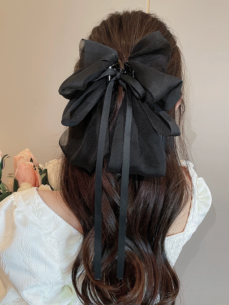 | nameOriginal | French gentle temperament bow ribbon grab clip showing face small back head hair clip shark clip hair accessories clip |