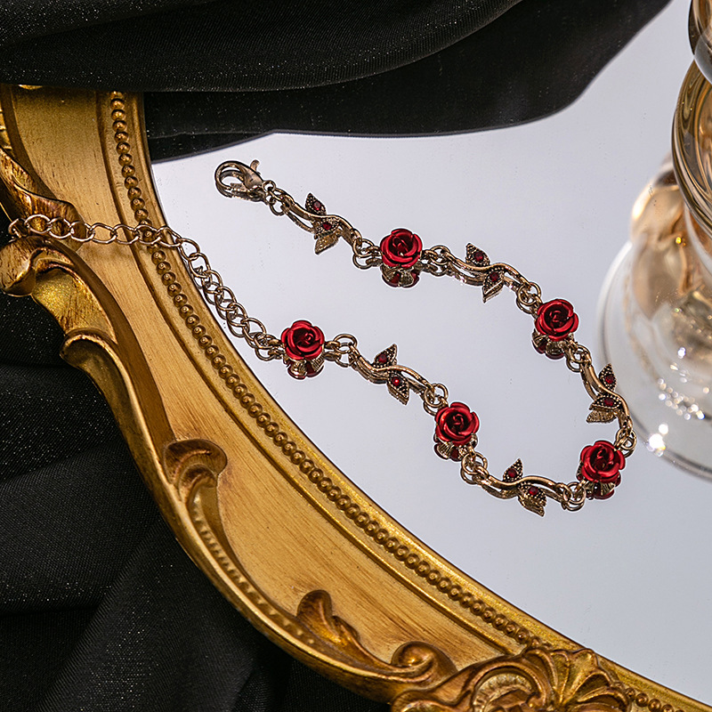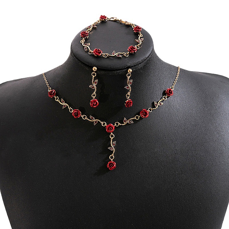 | nameOriginal | French Girl Mori Rose Earrings Vintage Romantic Red Flower Bracelet Niche Design Sense Necklace suit |