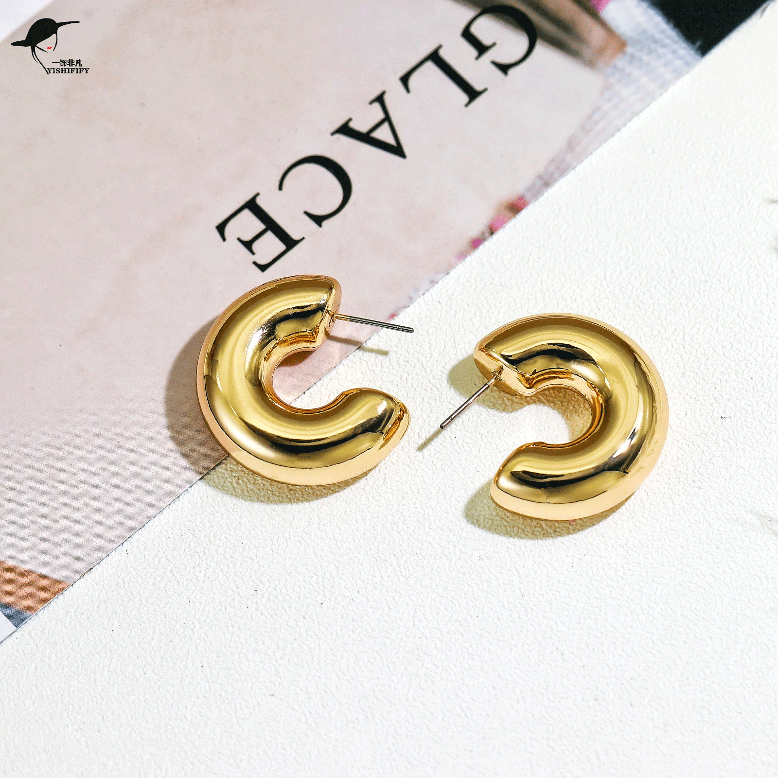 | nameOriginal | French glossy metallic c-shaped earrings cross-border explosions gold earrings for women |