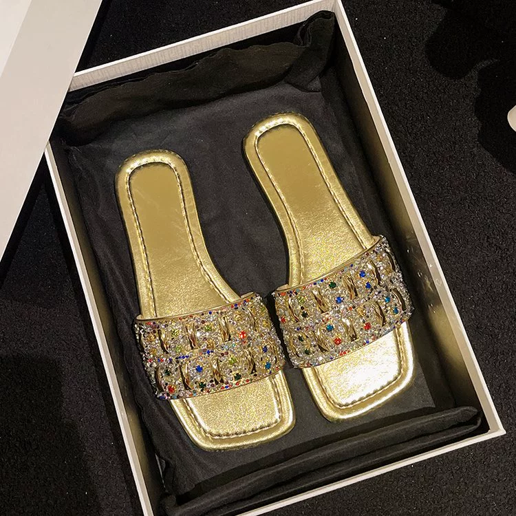 | nameOriginal | French gold flat-soled rhinestone slippers |