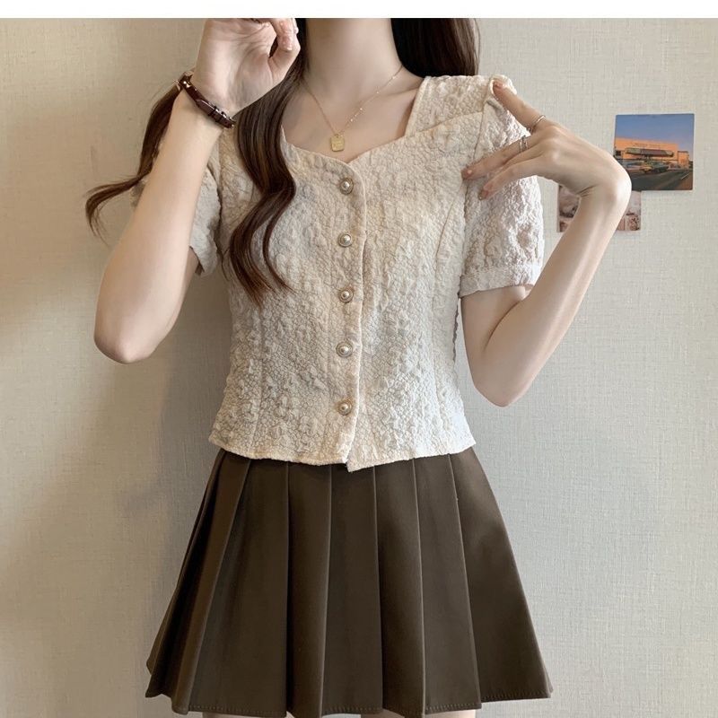| nameOriginal | French Heavy Industry Chanel Style Clavicle Top Elegant Socialite Slimming Waist Bubble Sleeve 3 Embossed Chiffon Cardigan for Summer |