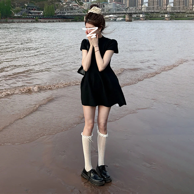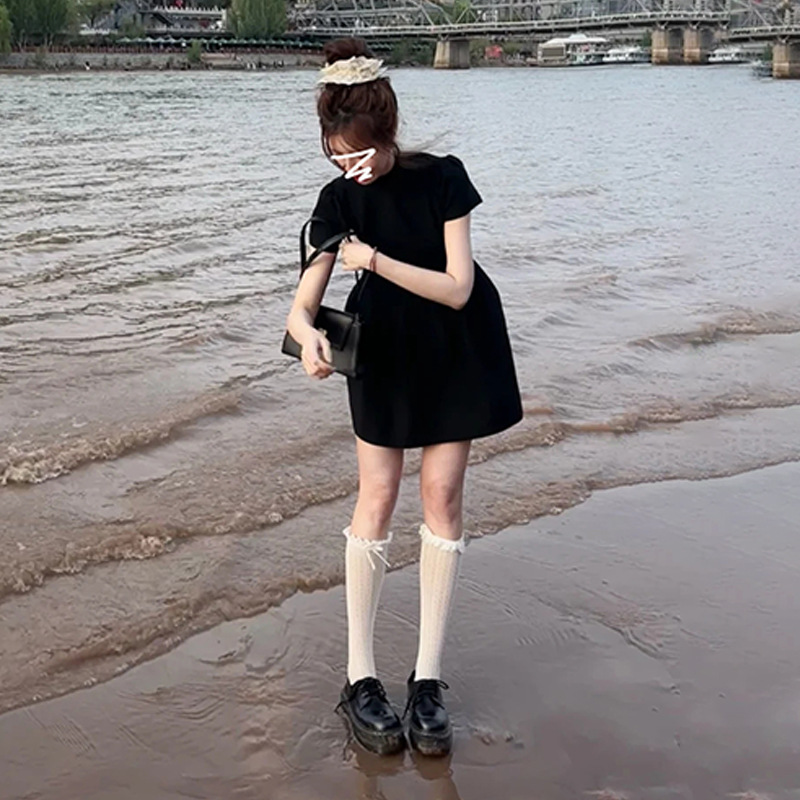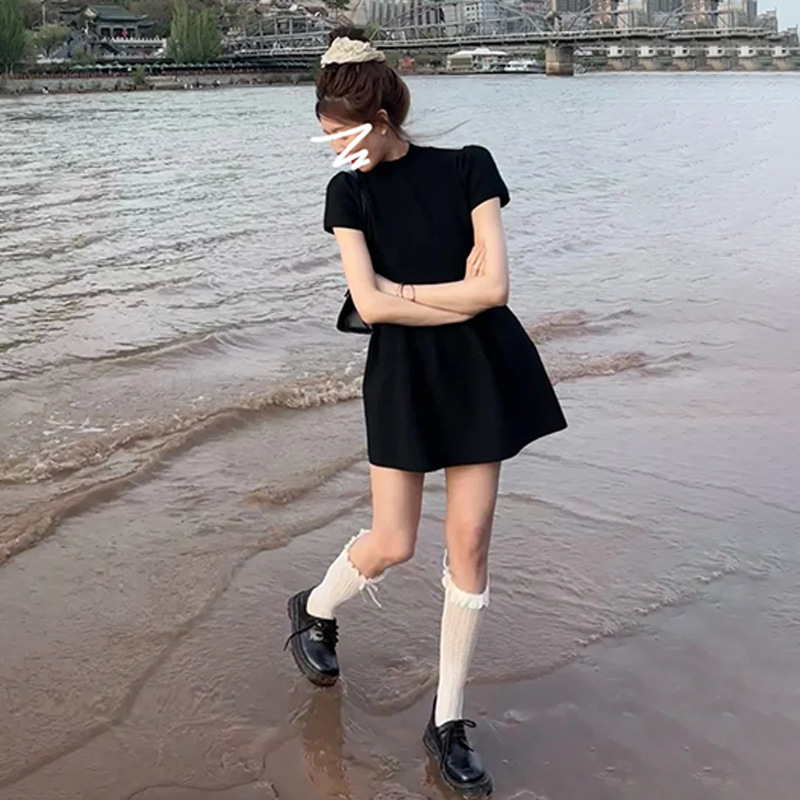| nameOriginal | French Hepburn Style Black High-end Elegant Short-sleeved dress Women's Summer 2024 Small Slim Look Short Skirt |