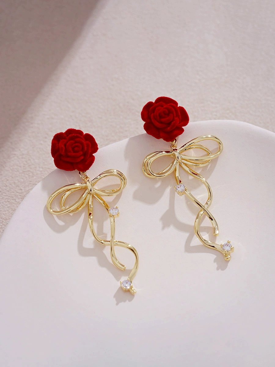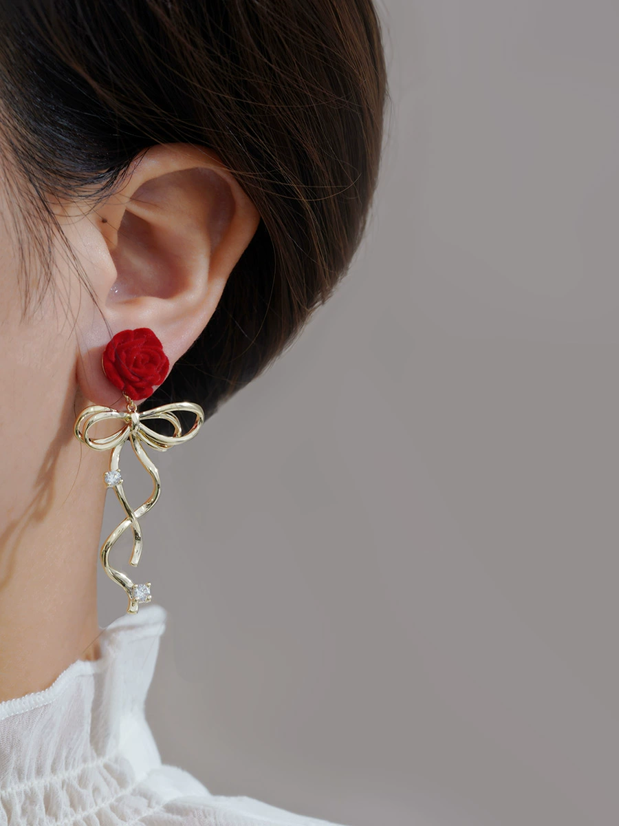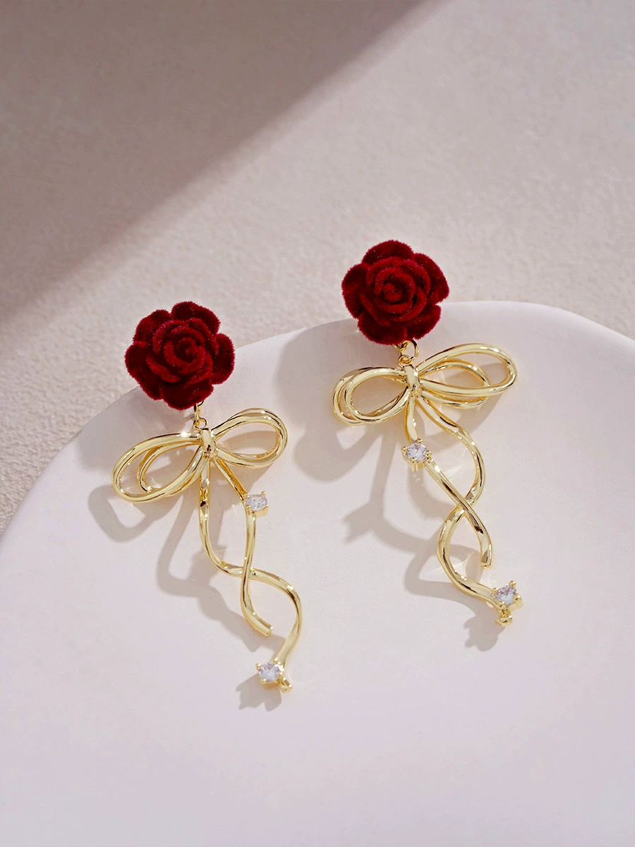| nameOriginal | French Hepburn style earrings, burgundy velvet camellia earrings, gold bow earrings, elegant and elegant style |