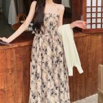 | nameOriginal | French Hepburn Style Large Size Sling Dress Women's Summer Design Sense Elegant Waisted Black Floral Midi Dress |