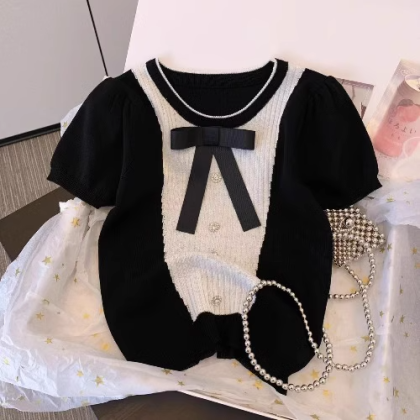 | nameOriginal | French high-end sense slimming and chic knitted short sleeves for fat girls |