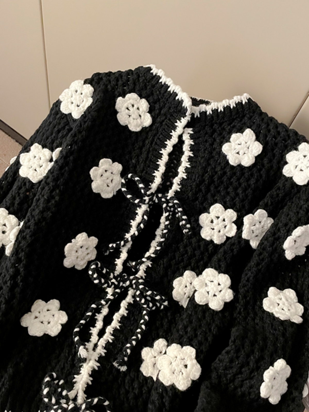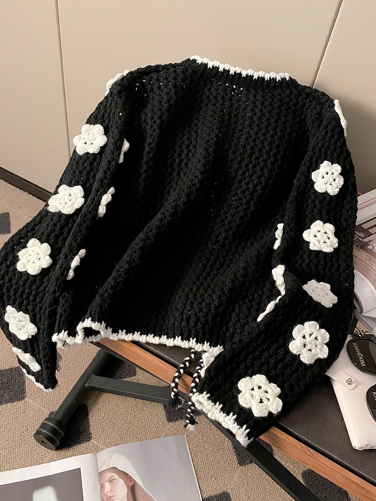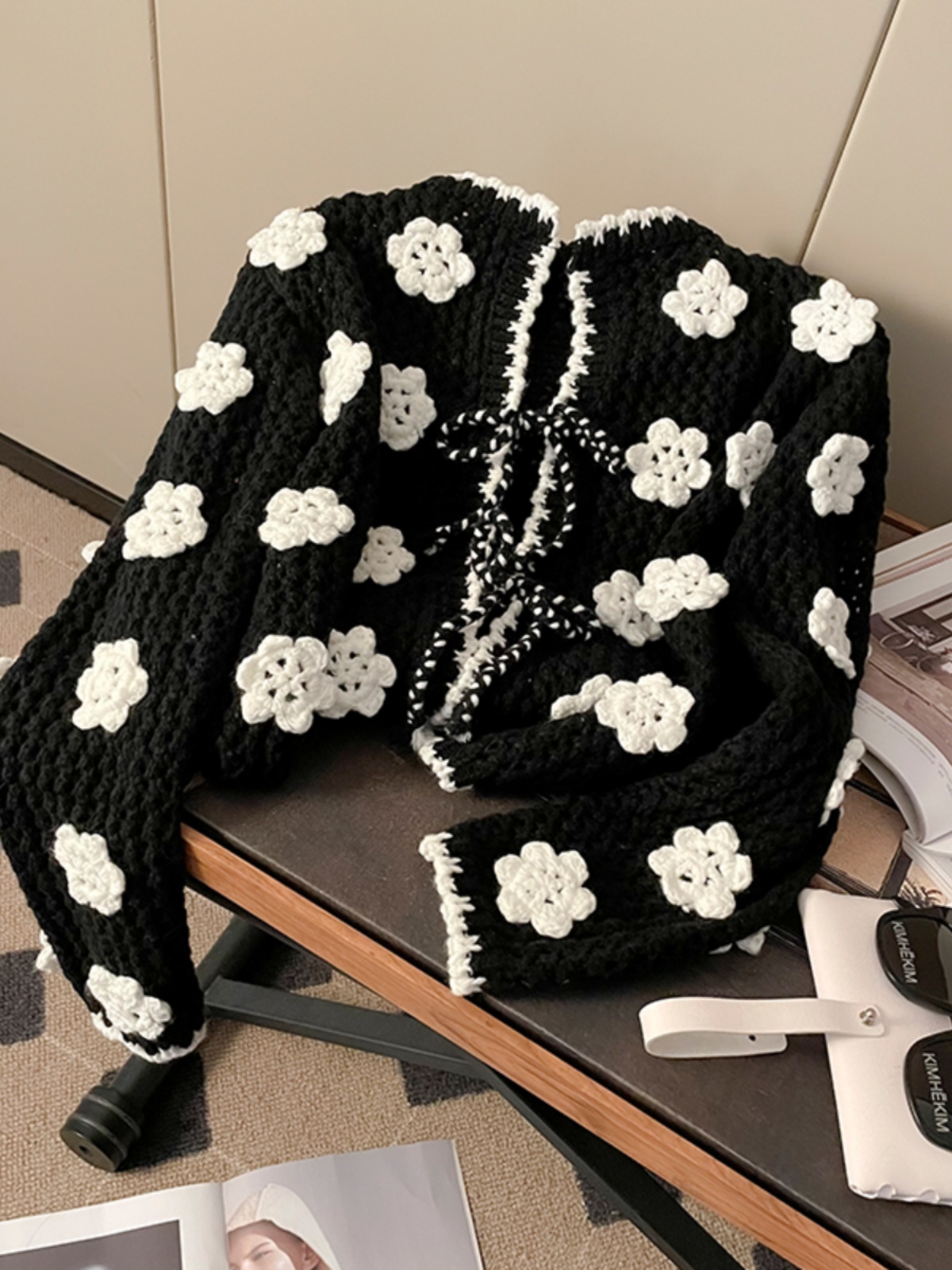 | nameOriginal | French High-end Sense Three-dimensional Crochet Knitted Cardigan Women's 2024 Spring New Lace-up Hollow Short Coat Top |