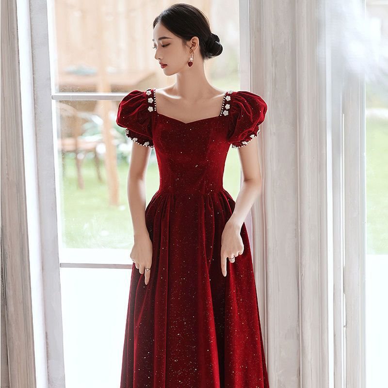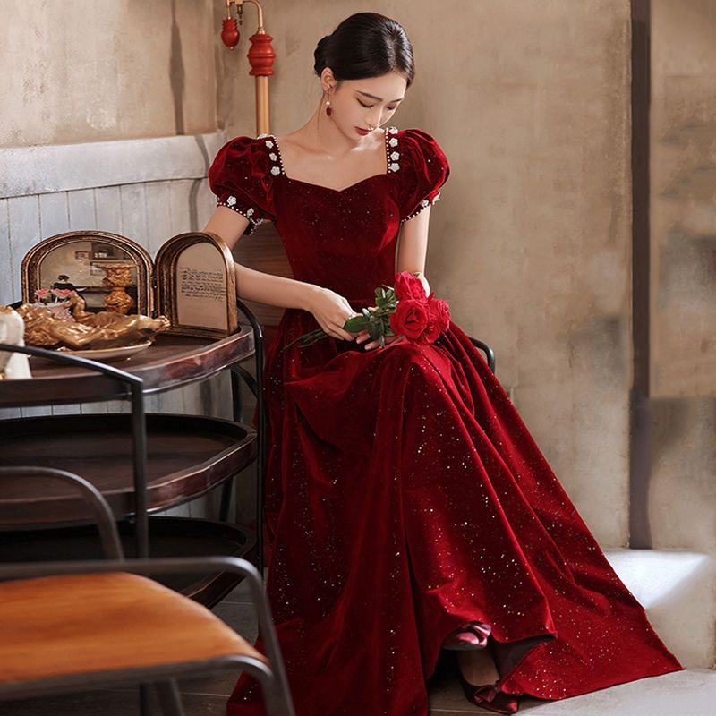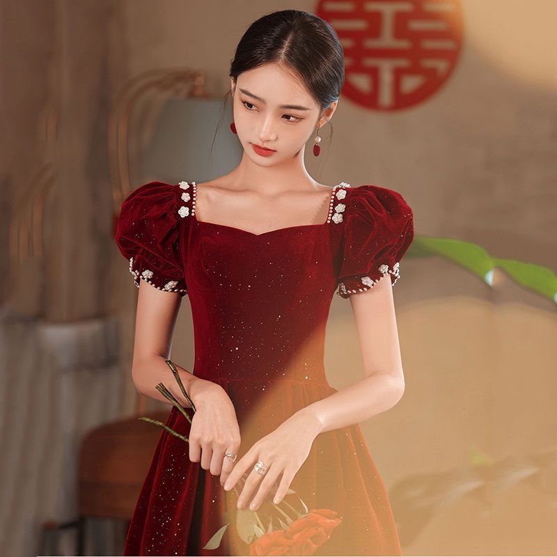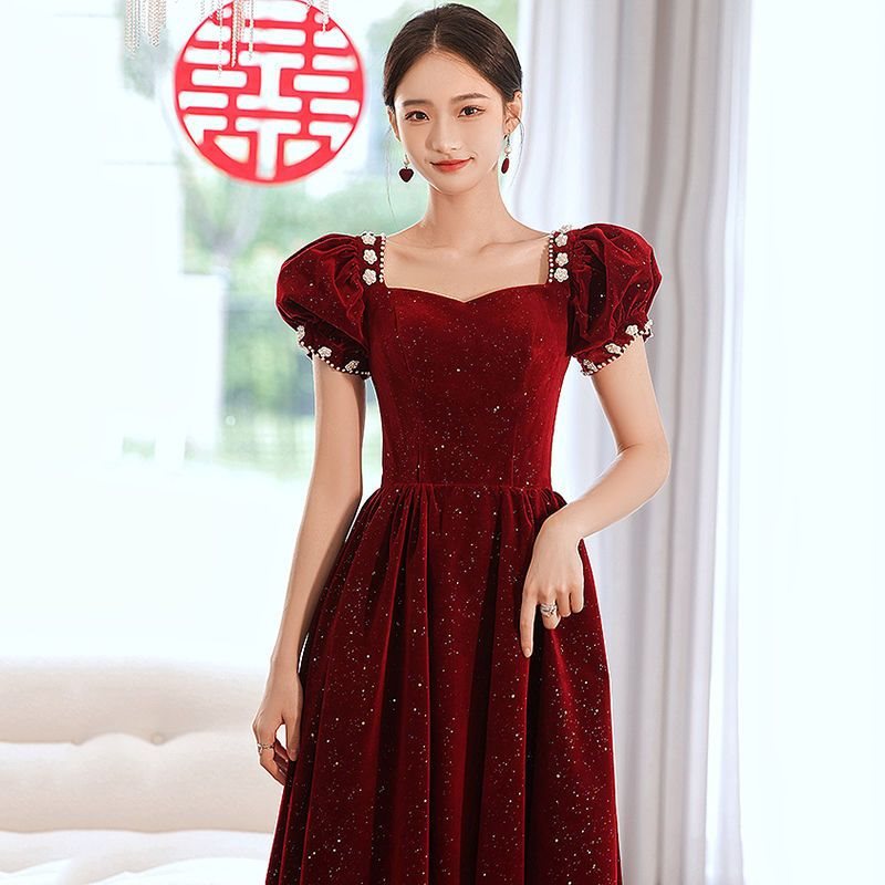 French High-end Toasting Dress 2022 New Bride Wedding Elegant Simple Dress Women’s Engagement Door Slimming