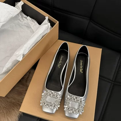 | nameOriginal | French high-end winter silver square buckle rhinestone shoes |