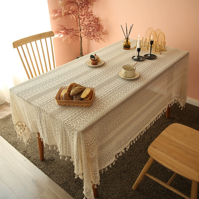 French ins style lace tablecloth forest style pastoral white crochet cover coffee table dessert B&B tablecloth