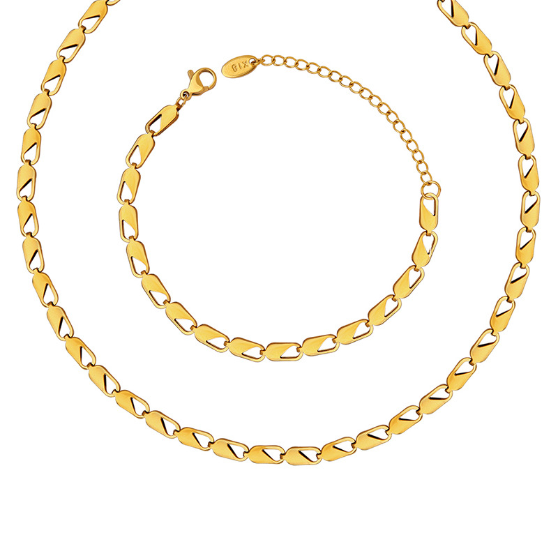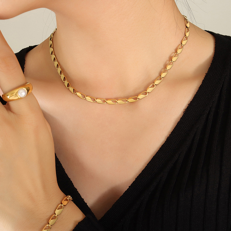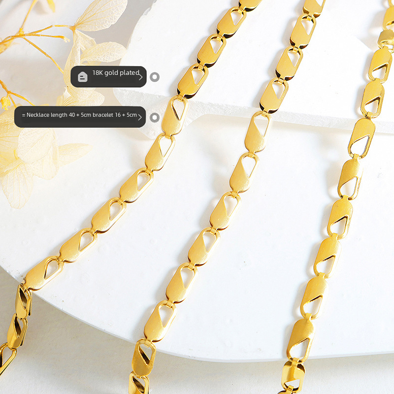 | nameOriginal | French ins Trendy Niche Design Necklace Bracelet Titanium Steel Plated 18K Gold Fadeless Geometric Hollow Jewelry Set |